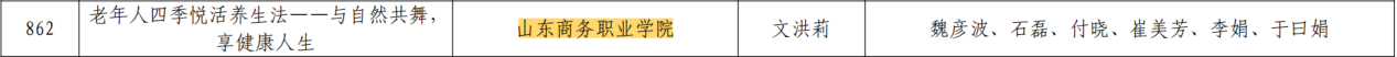 社区教育优秀课程共3门入选,分别是王晶老师的《追寻红色印记 讲述胶东故事》、于瑾老师的《红色记忆—胶东革命故事》和文洪莉老师的《老年人四季悦活养生法—与自然共舞,享健康人生》。