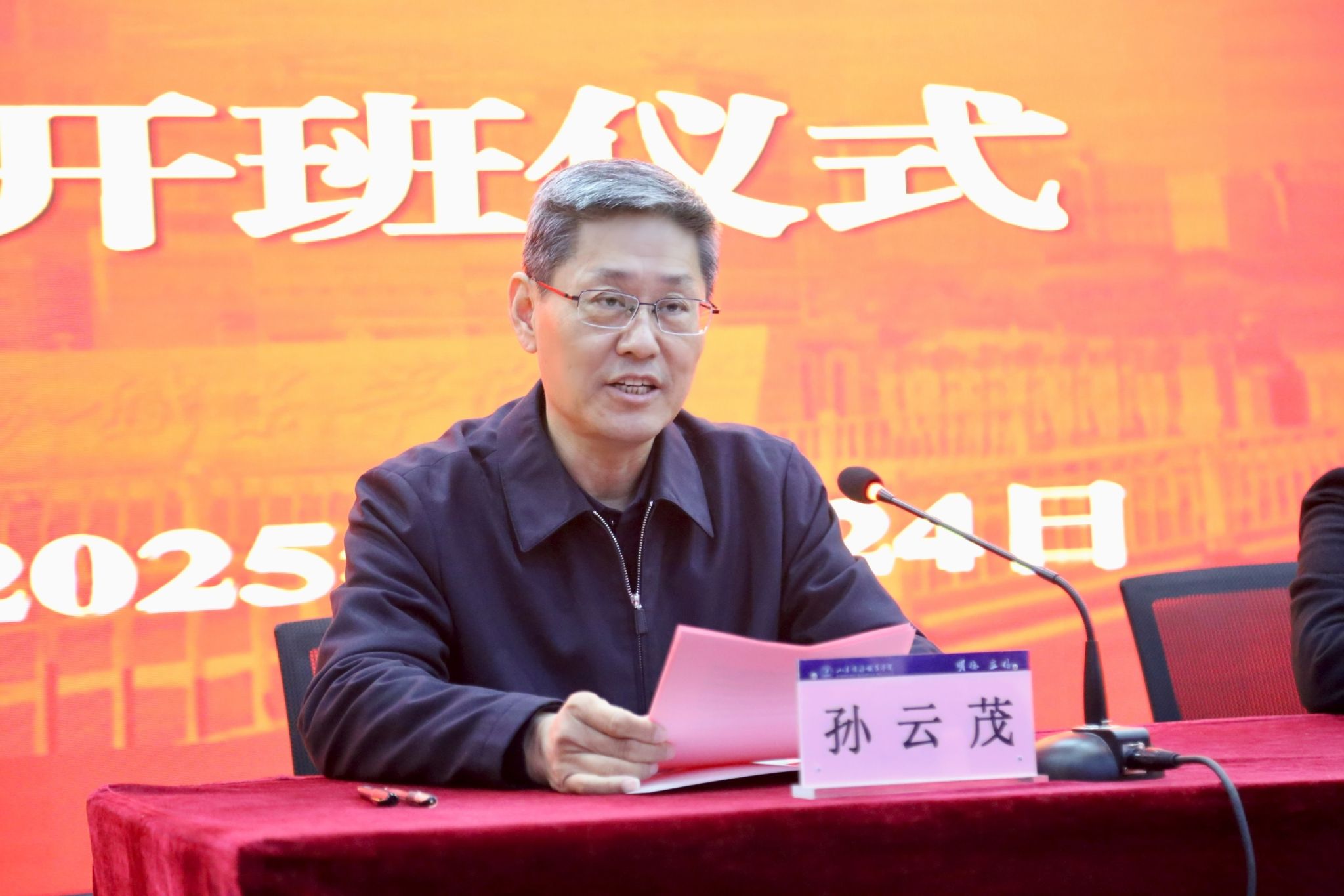 孙云茂发表了热情洋溢的致辞,感谢各位专家百忙之中莅临我校传经送宝。他指出,职业教育是国民教育体系和人力资源开发的重要组成部分,承担着培养多样化人才、传承技术技能、促进就业创业的重要职责,这就要求职业院校教师既要掌握专业知识,又要精通技术技能,因此着力提升教师双师型素养十分必要 。他要求全体参训教师要提高认识、端正态度,充分认识到本次培训对于学校高质量发展以及个人专业成长的重要意义。培训不是任务,而是一次难得的学习和提升机会。希望全体参训教师以严肃认真的态度对待培训工作,真正做到学有所思、学有所悟。