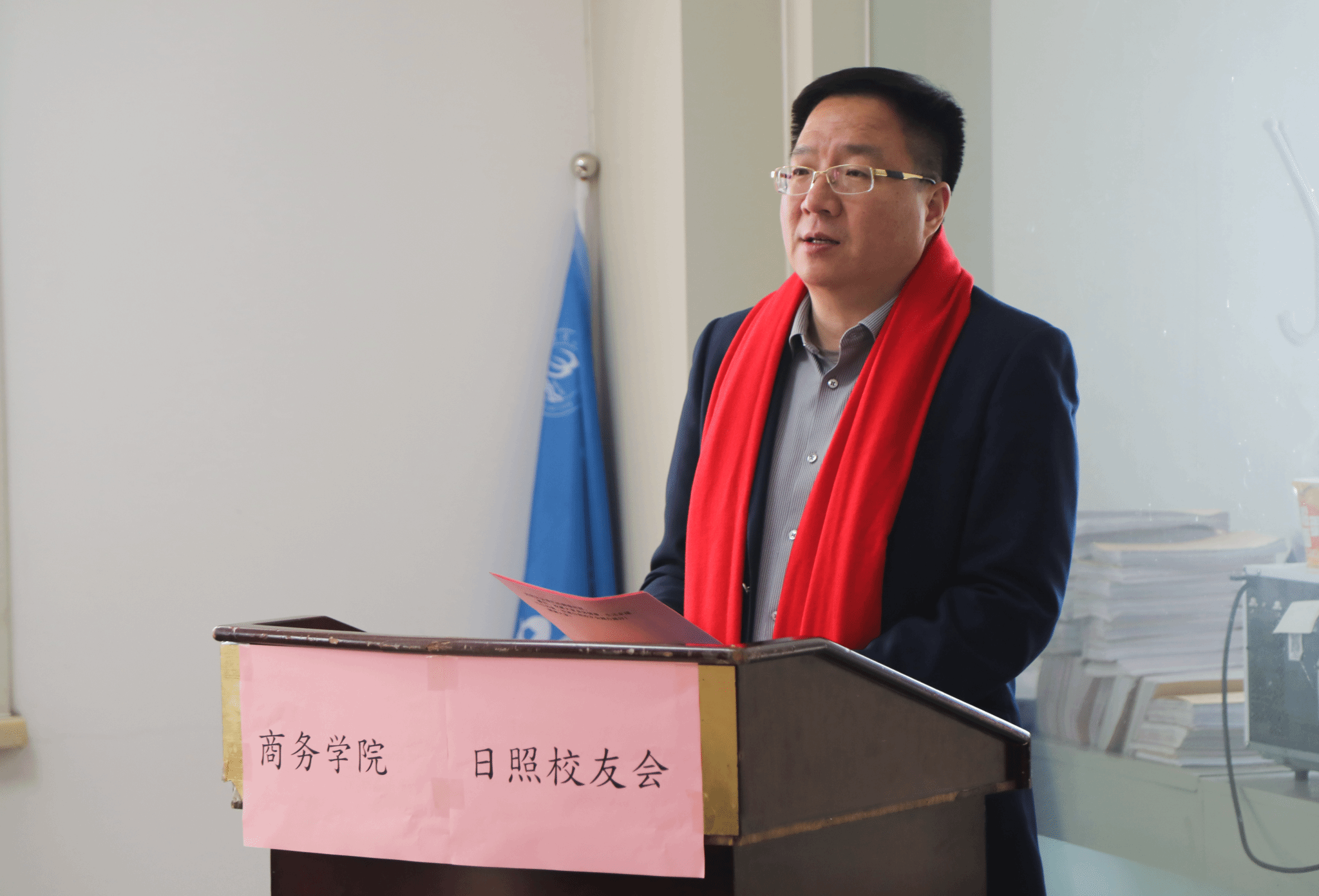 本站讯 为进一步凝聚商务校友力量,大力拓展校友服务平台建设,3月8日上午,我校日照校友会在日照环宇包装股份有限公司举行成立仪式。学校党委副书记张越,学校原党委委员、副校长陶传蔚,以及校友工作专班和众多日照校友代表们满怀热忱,齐聚一堂,共同回溯母校恩情,深情共叙校友情谊。