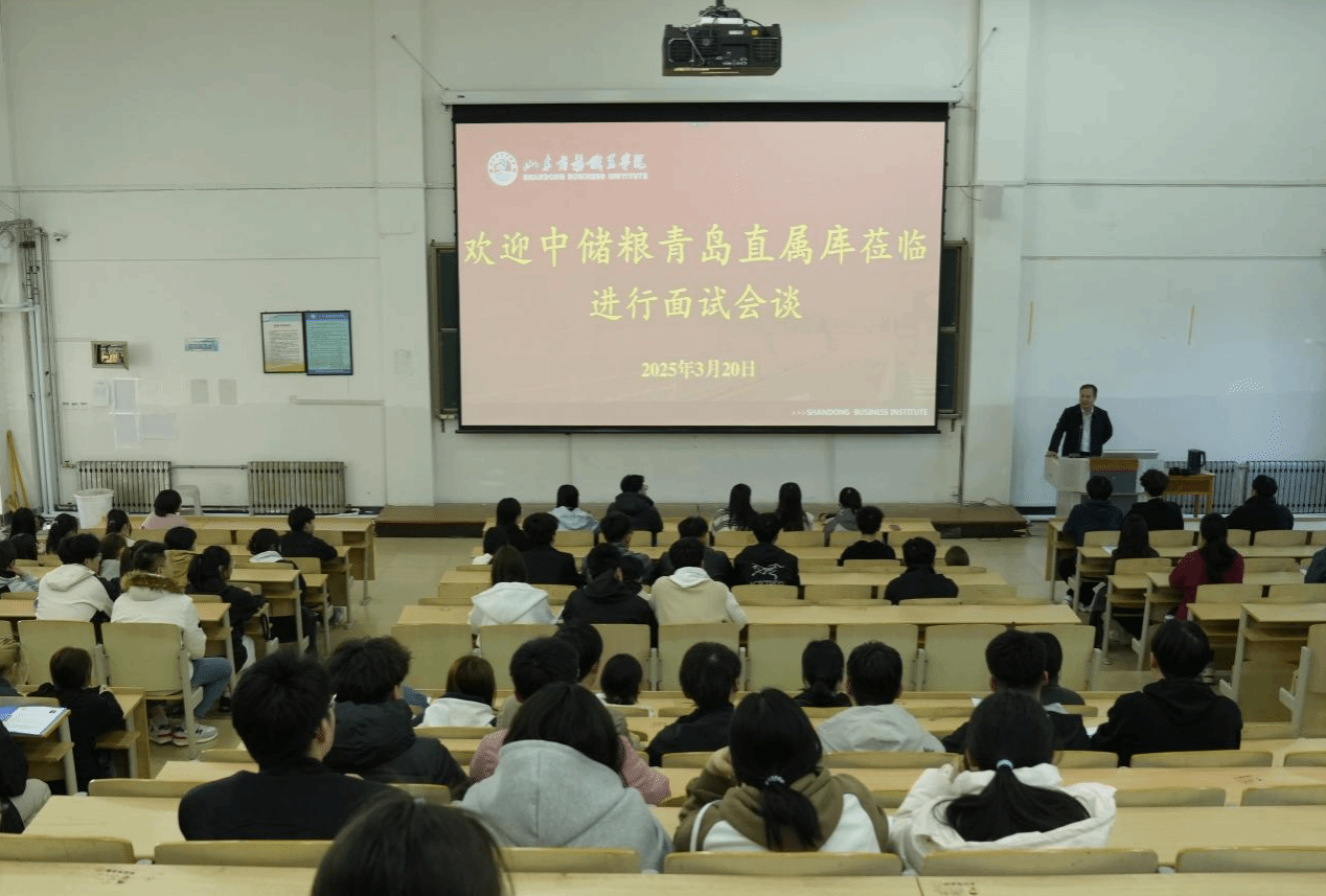 近日,中储粮济南库、青岛库等6家单位组成的“国企就业宣讲团”走进校园。宣讲会开始前,200人的会场已坐满大一和大二的学生,同学们纷纷递交简历争取面试机会。