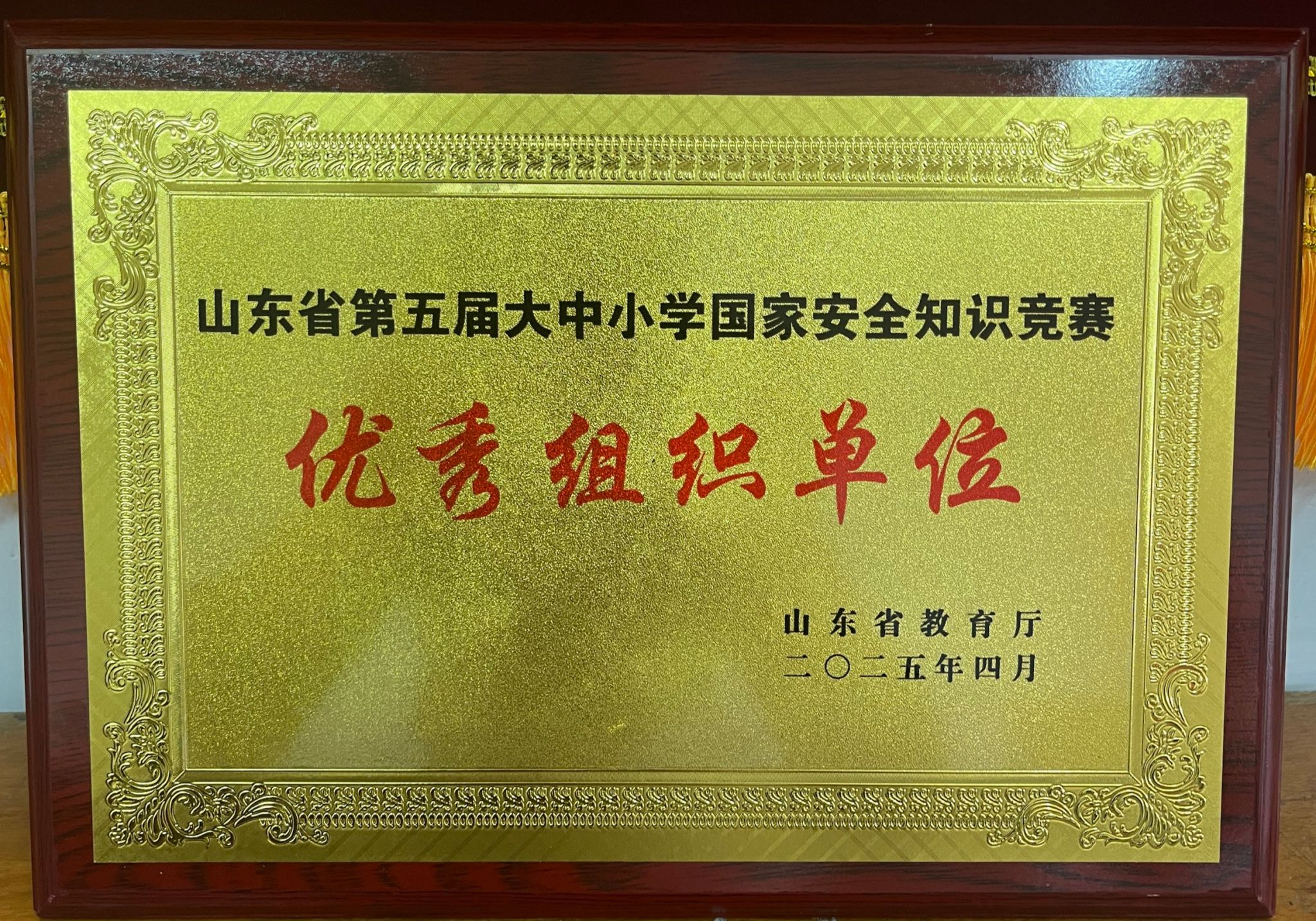 山东省第五届大中小学国家安全知识竞赛由山东省教育厅、省委国安办、省国家安全厅、团省委联合主办,旨在增强大中小学生的国家安全意识,增强维护国家安全的荣誉感和使命感。我校高度重视此次竞赛,凭借周密的赛前动员、科学的备赛机制,从全省百余所参赛院校中脱颖而出,最终实现答题率100%,获评“优秀组织单位”。这既展现了我校在国家安全知识普及方面的卓越成效,也体现了学生们对国家安全知识的积极学习态度。