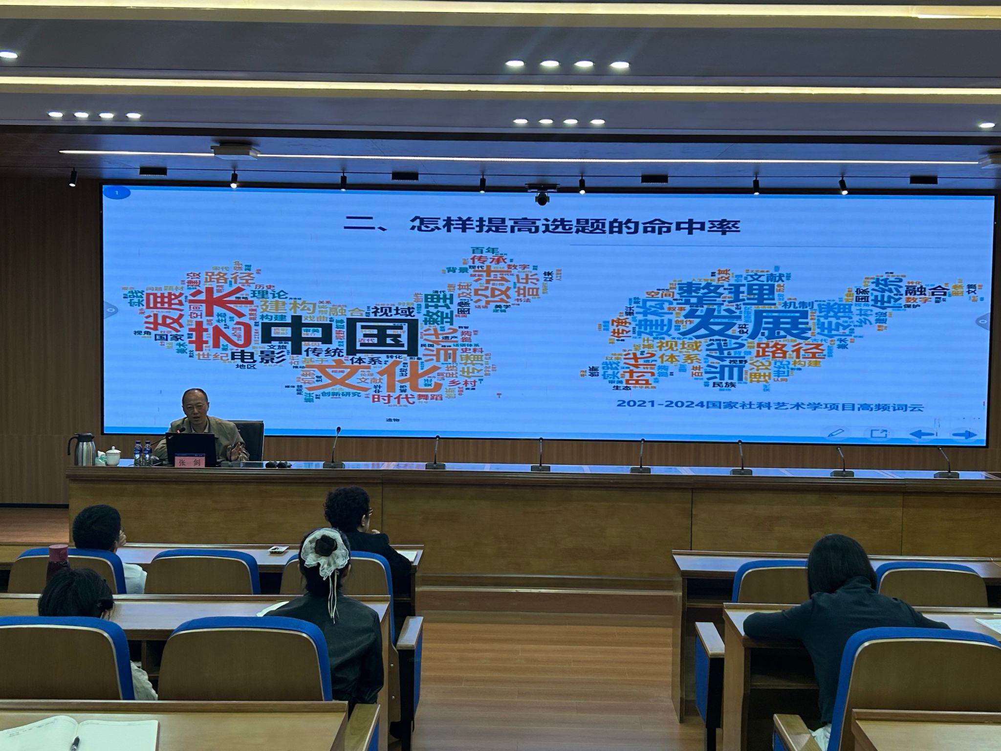 讲座中,张剑教授以深厚的学术积淀和丰富的评审经验,从“社科类项目选题方向凝练”“申报书撰写核心技巧”“研究设计优化路径”“学科前沿动态追踪”四大维度展开深度解析。他结合国家级、省级项目申报典型案例,强调选题需立足全省战略需求与学科特色,注重“问题意识”与“创新性”的有机融合;针对申报书撰写,他提出“逻辑清晰、论证扎实、亮点突出”“三位一体”原则,并现场剖析常见误区;此外,张剑教授还分享了跨学科研究设计的前沿思路,鼓励老师们以国家视野探索本土化命题,为学术创新注入活力。互动环节中,张剑教授与在场教师就申报细节、团队协作等话题展开热烈交流,其严谨的治学态度与幽默的讲述风格赢得阵阵掌声。与会教师纷纷表示,张剑教授的辅导既有理论高度又具实践价值,为科研攻关厘清了方向,讲座在热烈的氛围中圆满落幕。