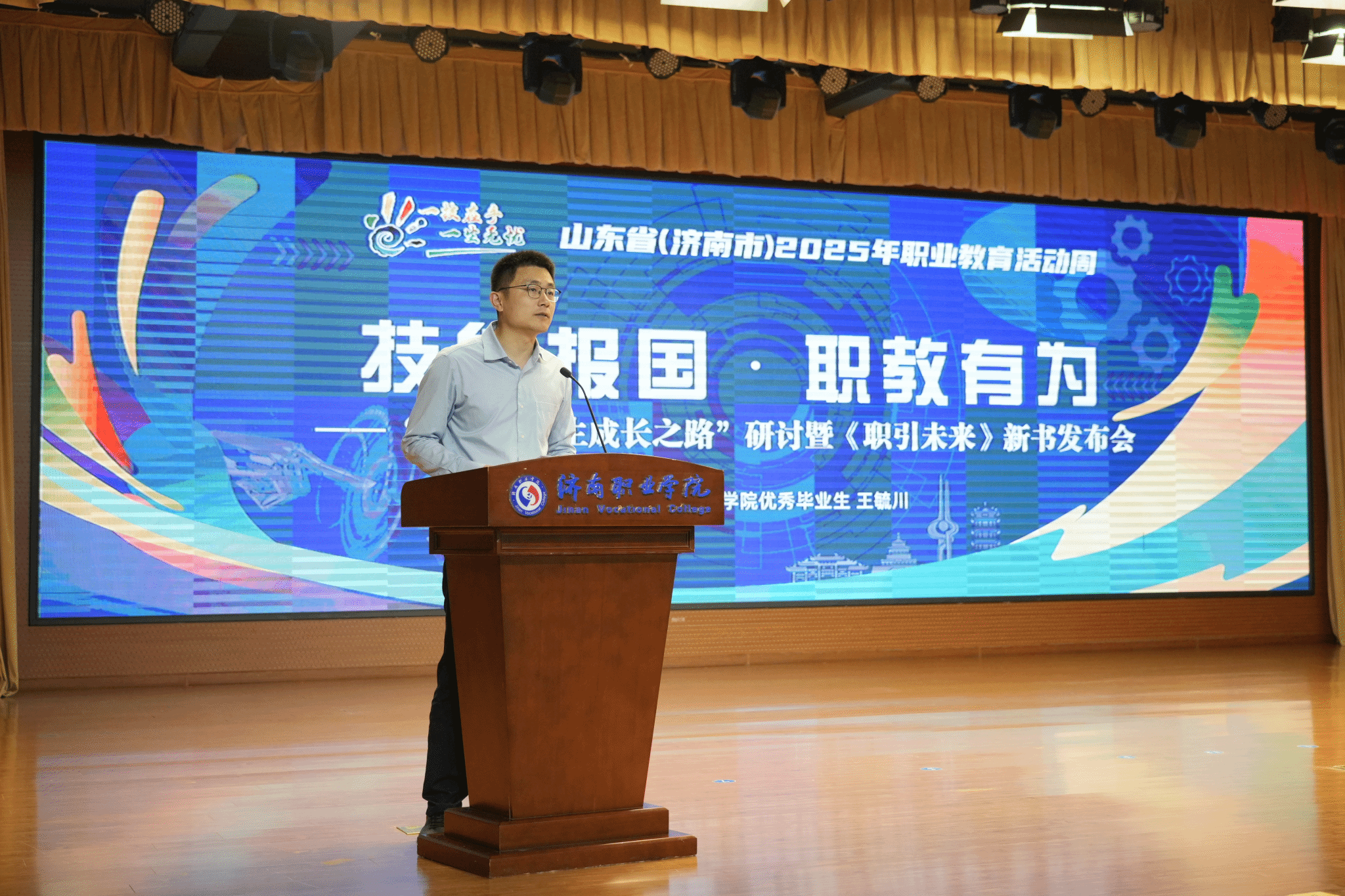 本站讯 5月11日,我校受邀参加由教育部职业教育与成人教育司指导,高校毕业生就业协会主办,高校毕业生就业协会职业教育就业工作委员会、机械工业出版社有限公司协办的“技能报国 职教有为”专题研讨会暨《职引未来》丛书第一辑发布会,会议是教育部2025年职业教育活动周全国性重点活动,也是我校贯彻《山东省教育厅等10部门关于做好2025年职业教育活动周相关工作的通知》,利用职教周充分展示我校职教成就和发展成果的重要活动之一。学校党委委员、纪委书记魏才奎、校企合作与就业工作处处长孙琳和优秀毕业生王毓川参加了会议。