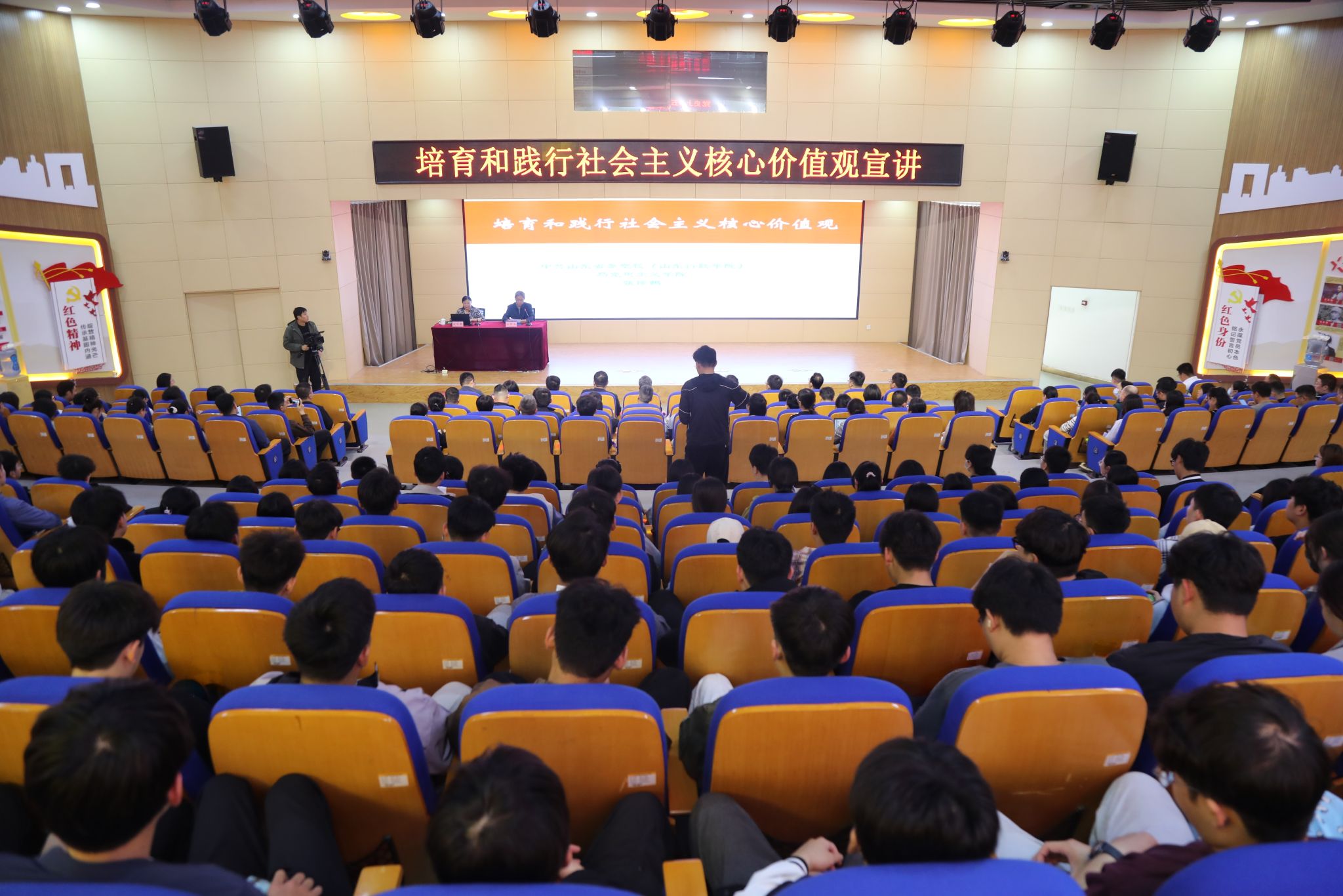 本站讯 为积极培育和践行社会主义核心价值观,5月14日上午,烟台市社会主义核心价值观宣讲活动在我校党性教育基地举办,活动邀请省委党校马克思主义学院院长、二级教授张传鹤作主题宣讲,学校党委书记孙云茂主持会议,党委副书记、校长王发明及领导班子成员,烟台市融媒体中心总编辑滕岳,烟台日报编审委员会总编辑马全应,高新区工委管委分管负责人姜洋,市委宣传部宣教科科长李洪义及各县市区党委宣传部分管副部长、科室负责人,学校二级学院分管学生副院长、辅导员,“青马工程”培训班学员,学生干部和学生代表参加活动。