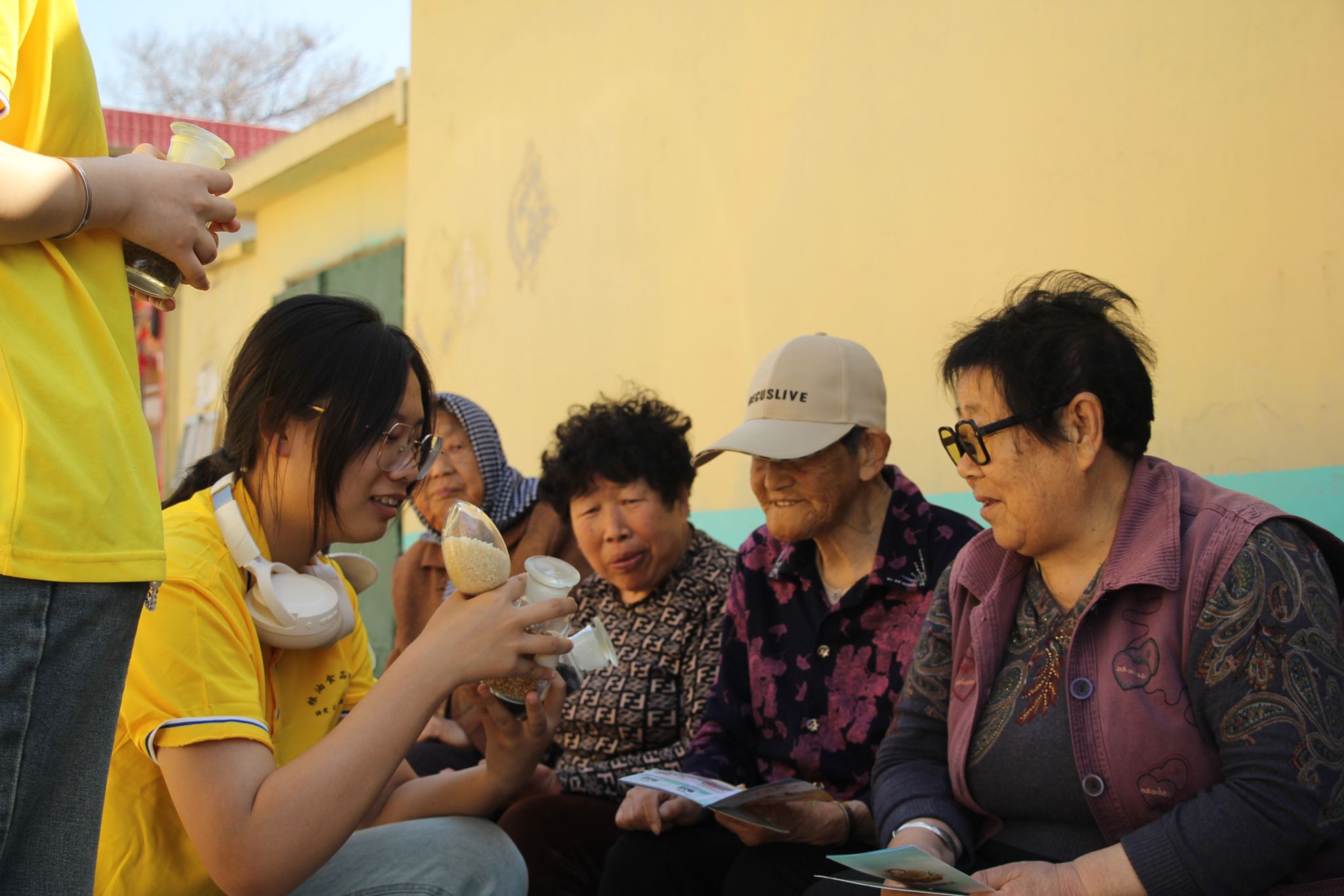 在村委会广场搭建的“粮安果技云课堂”成为政策与技术的传播枢纽。以“粮食安全是‘国之大者’”为主题开展专题宣讲,结合烟台当地粮食生产特点,通过“粮食的一生”故事化讲解模式,系统解读从种子培育到餐桌消费的全链条安全要点。现场重点演示科学储粮技术,通过对比实验展示合理膳食对减少粮食浪费的实际效果,同步科普食品安全鉴别技巧及高血压、糖尿病等慢性病的饮食预防知识,累计覆盖村民200余人次,筑牢“粮食安全人人有责”的思想共识。