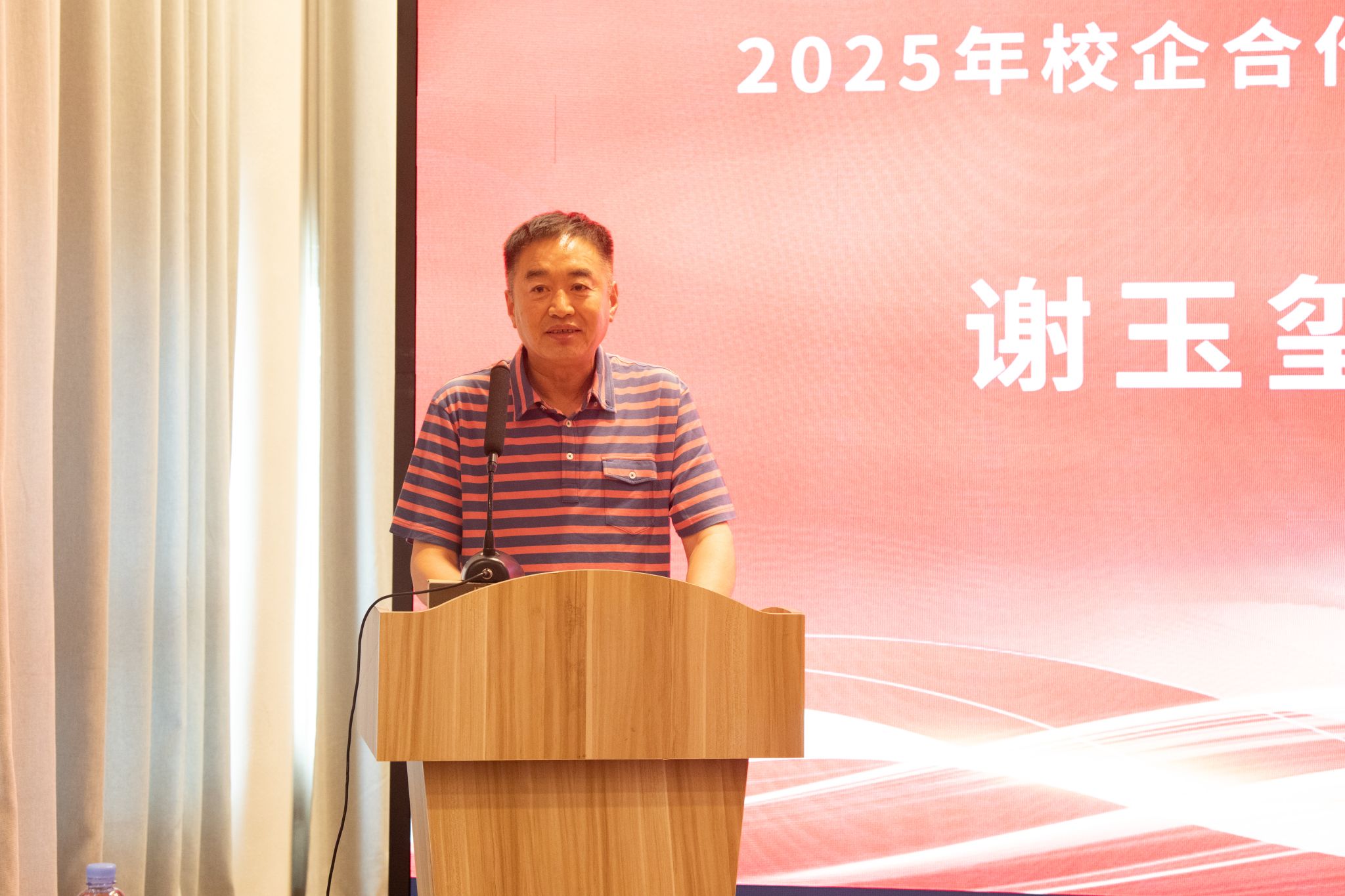 谢玉玺作为烟台市金融协会会长就金融赋能,搭建校企合作新桥梁发表了讲话,谢玉玺从行业视角解读校企合作的时代价值。他指出,职业教育与产业发展血脉相连,金融行业对复合型人才的需求日益迫切,期待学校发挥专业特色,为区域经济输送更多“懂理论、精技能、通市场”的应用型人才。他表示,金融协会将积极牵线搭桥,推动金融企业与学校在实习实训、项目孵化等方面开展深度合作,以金融“活水”赋能校企协同创新。