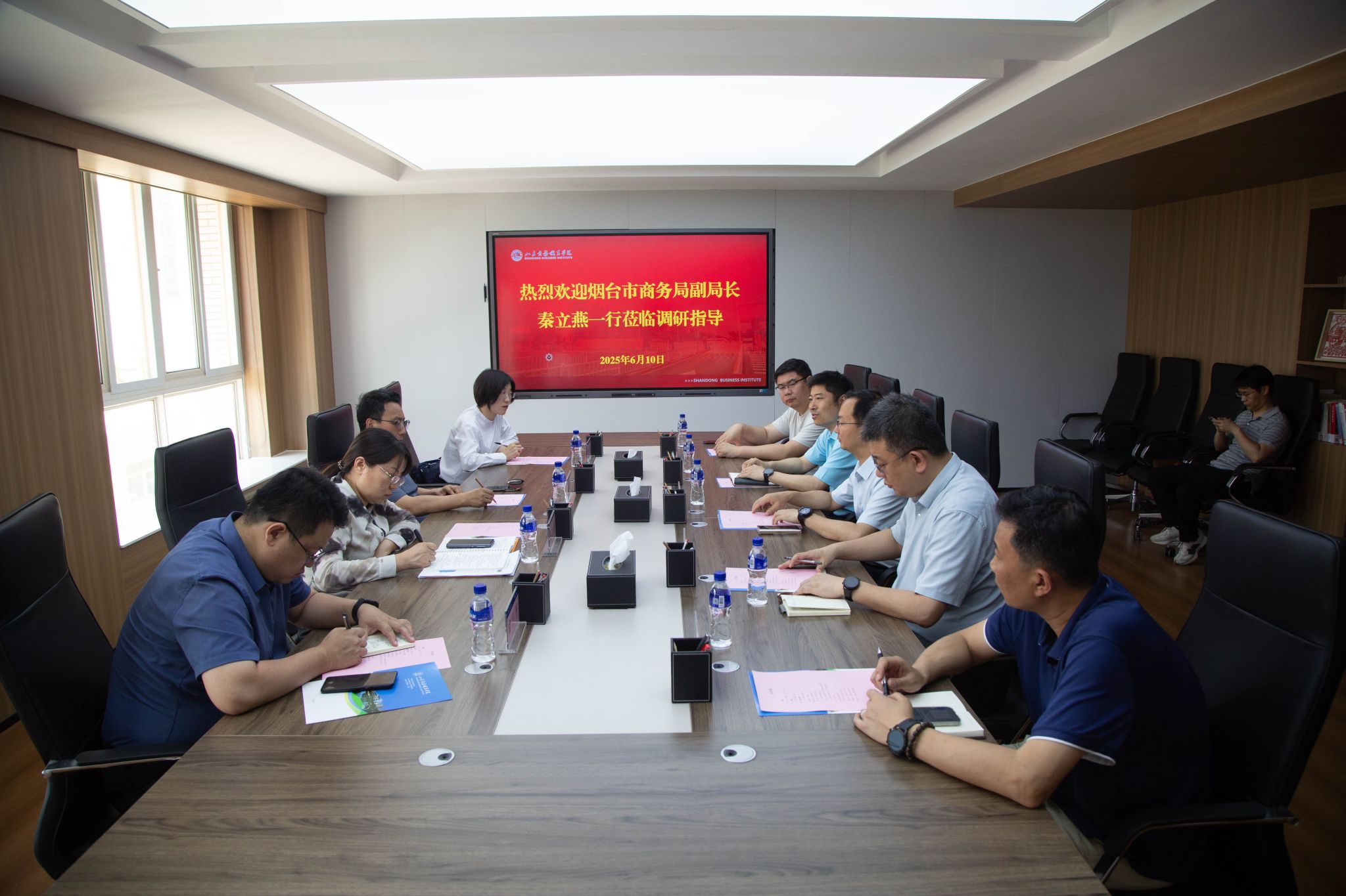 本站讯 6月10日,烟台市商务局副局长秦立燕一行3人,在烟台传媒集团策划部主任关宝宪、烟台高新技术产业开发区招商局局长杨林等领导陪同下来访我校。双方就黄河流域(烟台)全球数字贸易港项目开展洽谈,学校党委委员、纪委书记魏才奎,后勤服务处、校企合作与就业工作处及经济管理学院有关同志参加接待。