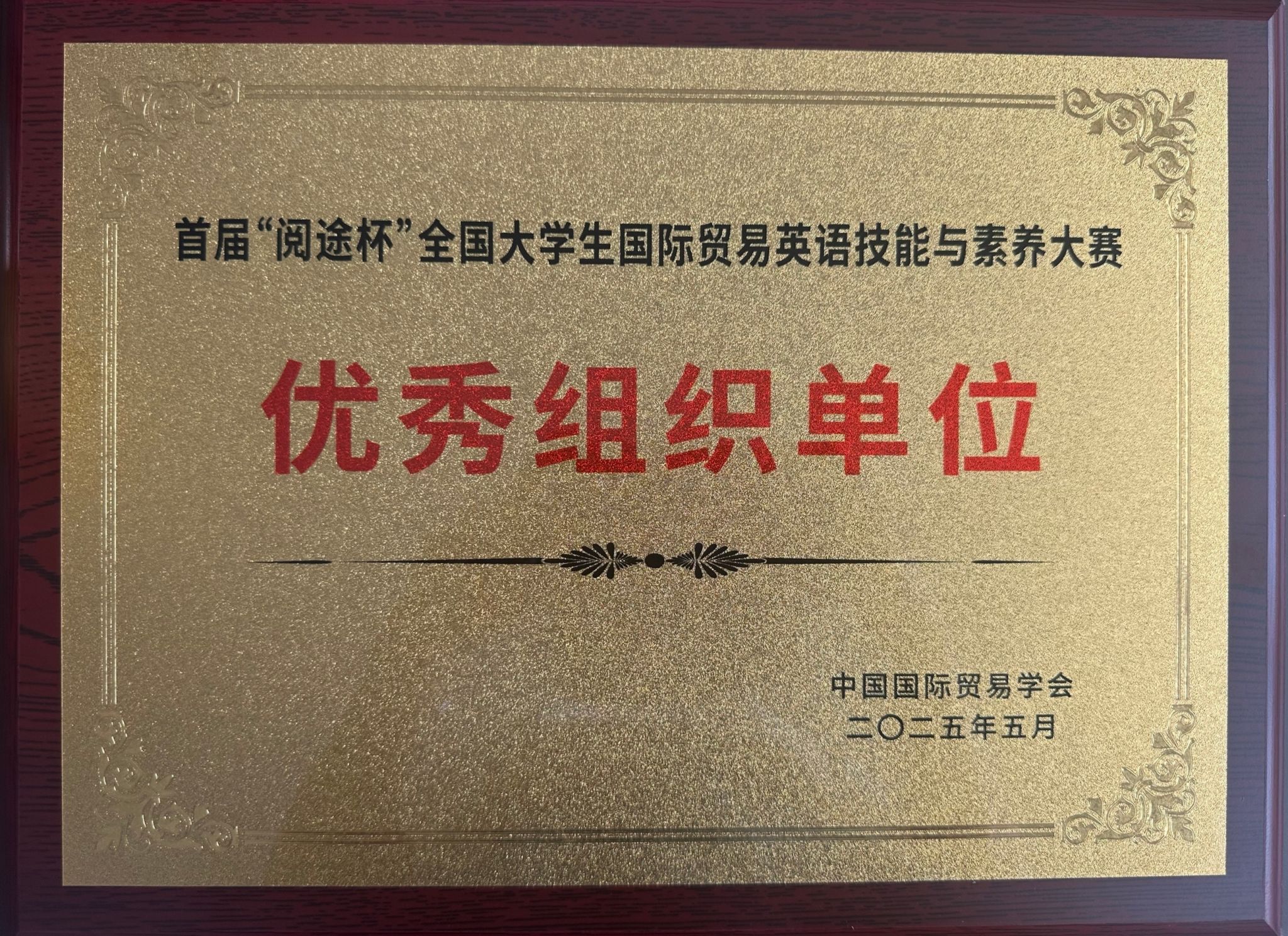 本站讯 近日,由中国国际贸易学会主办的首届“阅途杯”全国大学生国际贸易英语技能与素养大赛落下帷幕。来自我校经济管理学院2023级国际经济与贸易专业的孙洁、许桂萌、王小雨、矫晓雨、孟佳怡五位同学,凭借扎实的专业知识、出色的英语应用能力和优秀的团队协作精神,在专科组中脱颖而出,荣获华东赛区(上海、江苏、浙江、安徽、山东、江西、福建、台湾)一等奖的佳绩,学校获得“优秀组织单位”荣誉称号。