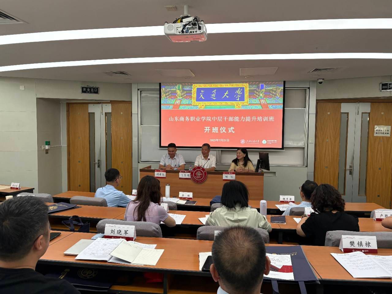 本站讯 为进一步提升中层干部的政治素质和履职能力,全力打造一支政治坚定、业务精湛、作风优良的高素质干部队伍,7月21日至23日,学校在上海交通大学举办2025年中层干部能力提升培训班。学校党委副书记、校长王发明,党委副书记张越,党委委员、纪委书记魏才奎,党委委员、宣传统战部部长孙芹宝以及学校中层领导干部共45人参加培训。