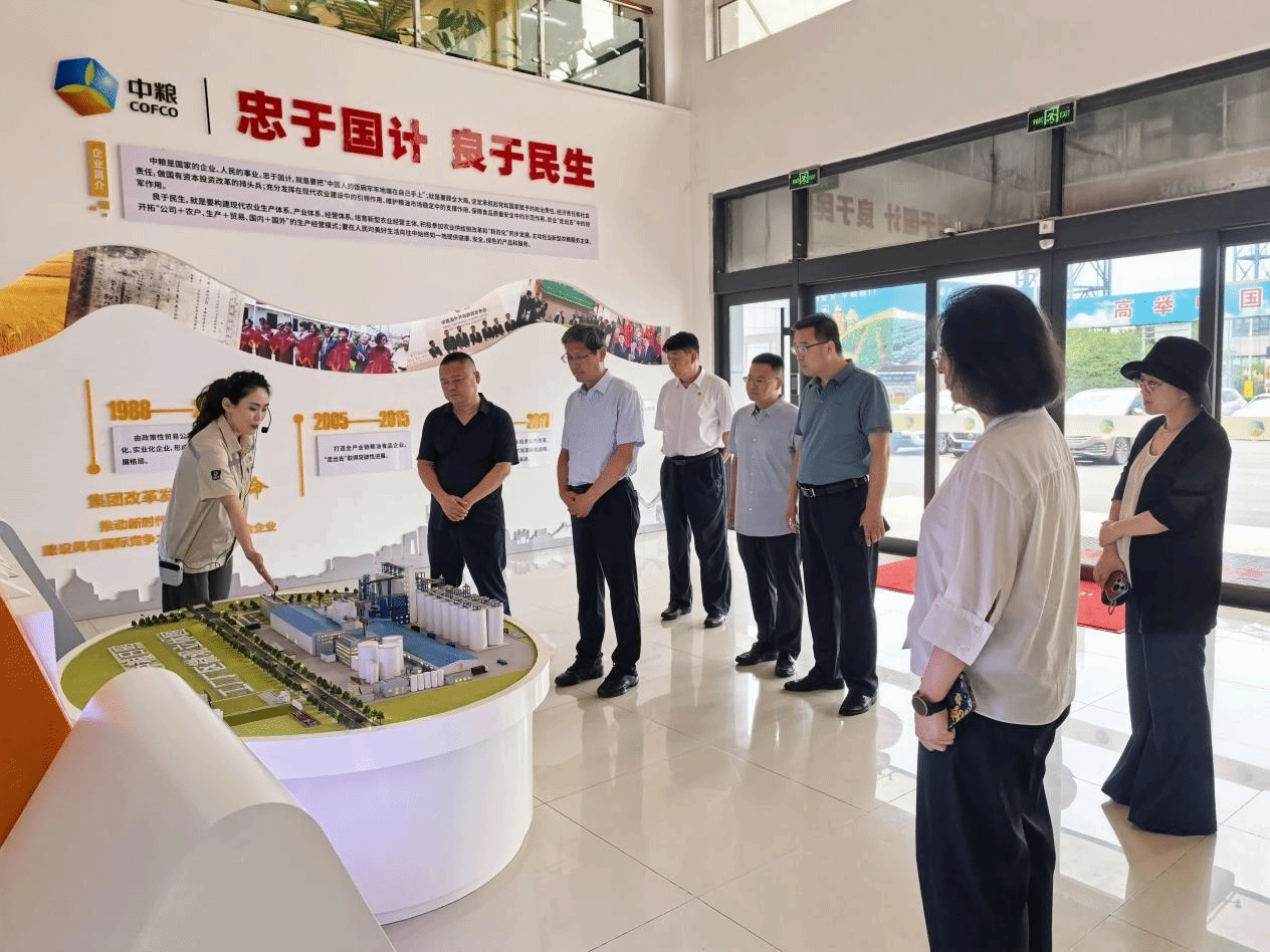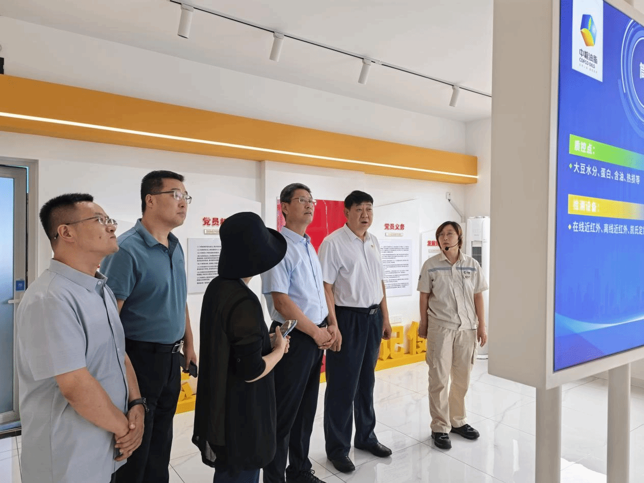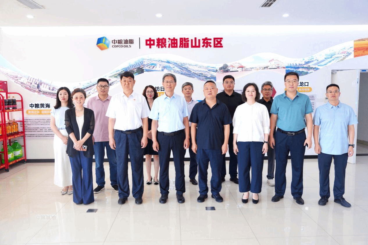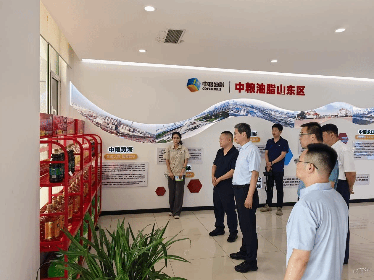 调研团队在中粮油脂山东区党委书记赵华、纪委书记魏永生陪同下参观了企业品控党建大厅、一楼企业文化区和二楼智控大厅。深入了解了企业发展历程、产业布局,通过智能化监控系统,全面了解企业在生产管理、仓储物流等方面的智能化运作模式,以及企业如何将党建工作与产品质量把控深度融合,以党建引领推动企业高质量发展的先进经验。