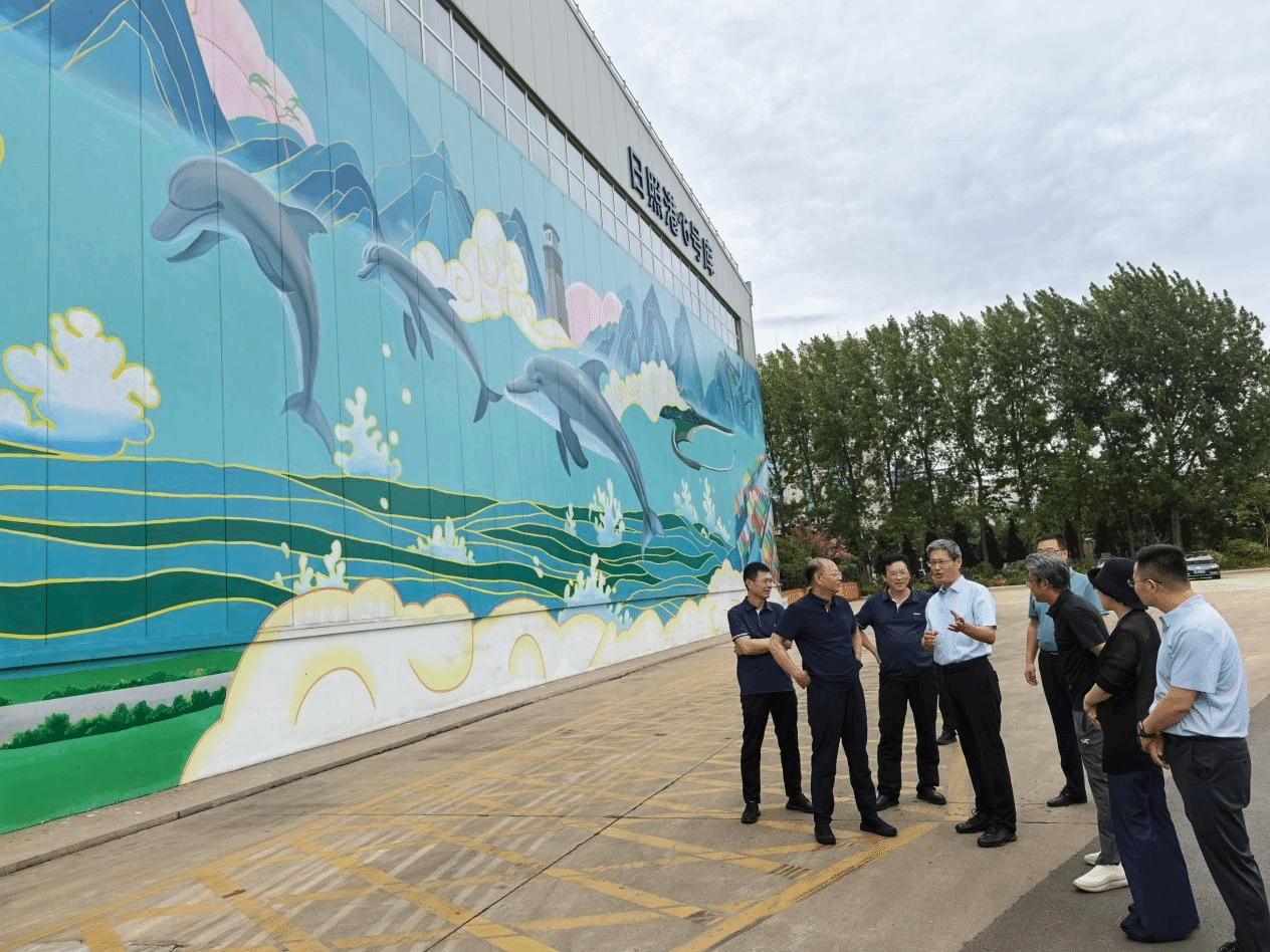 当天下午,调研团队走访山东港口日照港集团有限公司,在日照港监事会主席锁旭升、党群办公室主任陈祥政等相关负责同志陪同下,考察了我校艺术设计学院服务日照港集团“粮食基地”筒仓形象创意设计与绘制项目、智能化粮食基地建设、“海上运输粮仓”战略的新成果。参观了全国首座港口主题综合性展览馆,感受日照港集团在产业融合、艺术赋能、科技创新与绿色转型领域的成功实践。锁旭升强调:“通过艺术赋能,我们让冰冷的工业设施成为传播港口文化的载体,企校融合,为高校学生提供实践平台,实现社会效益与经济效益双赢。”校企双方围绕“产业需求导向、创新技术赋能、文化品牌塑造”三大核心,构建“项目共建、人才共育、成果共享”的协同发展模式,通过“艺术+科技+产业”深度融合,探索出一条校企合作新路径。