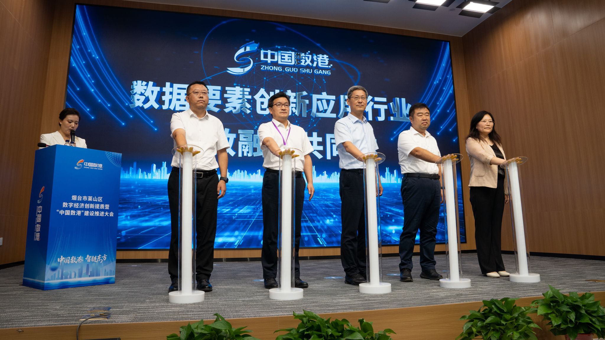 上午9时,部分理事转场至正大·芯智汇,参加由烟台市大数据局和烟台市莱山区人民政府主办的“数字经济创新提质暨中国数港建设推进大会”。大会内容涵盖开港仪式、揭牌仪式、项目签约等多个环节。作为大会重要议程之一,数据要素创新应用行业产教融合共同体在此次大会上正式启动,孙云茂、刘位龙、申传旺、柳林、赵兴莉一起上台按下了启动键。
