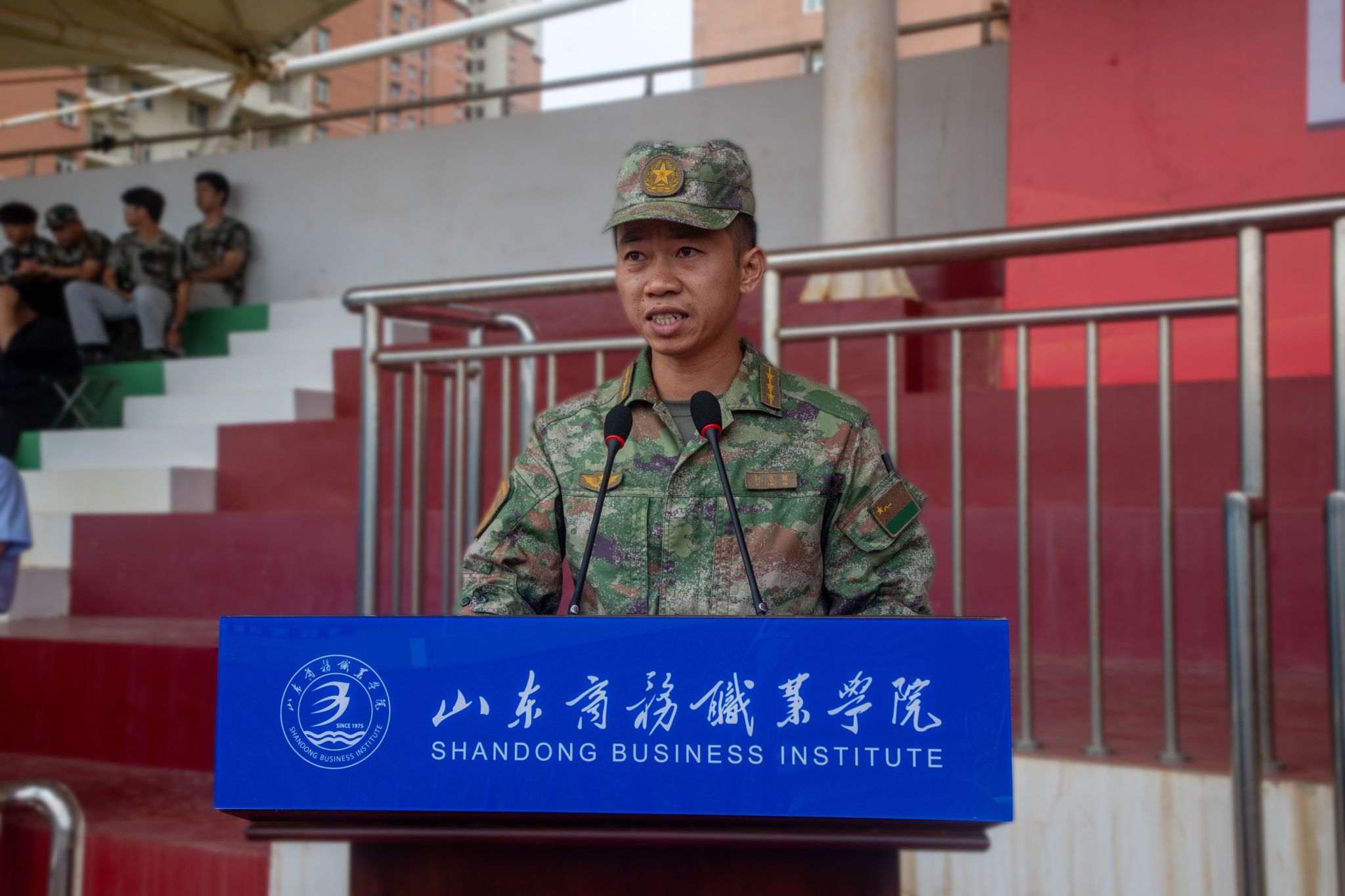 承训部队代表、军训团团长柯良烟讲话,他表示将科学组训、严格管理,帮助新生提升国防素养,增强报国之志。