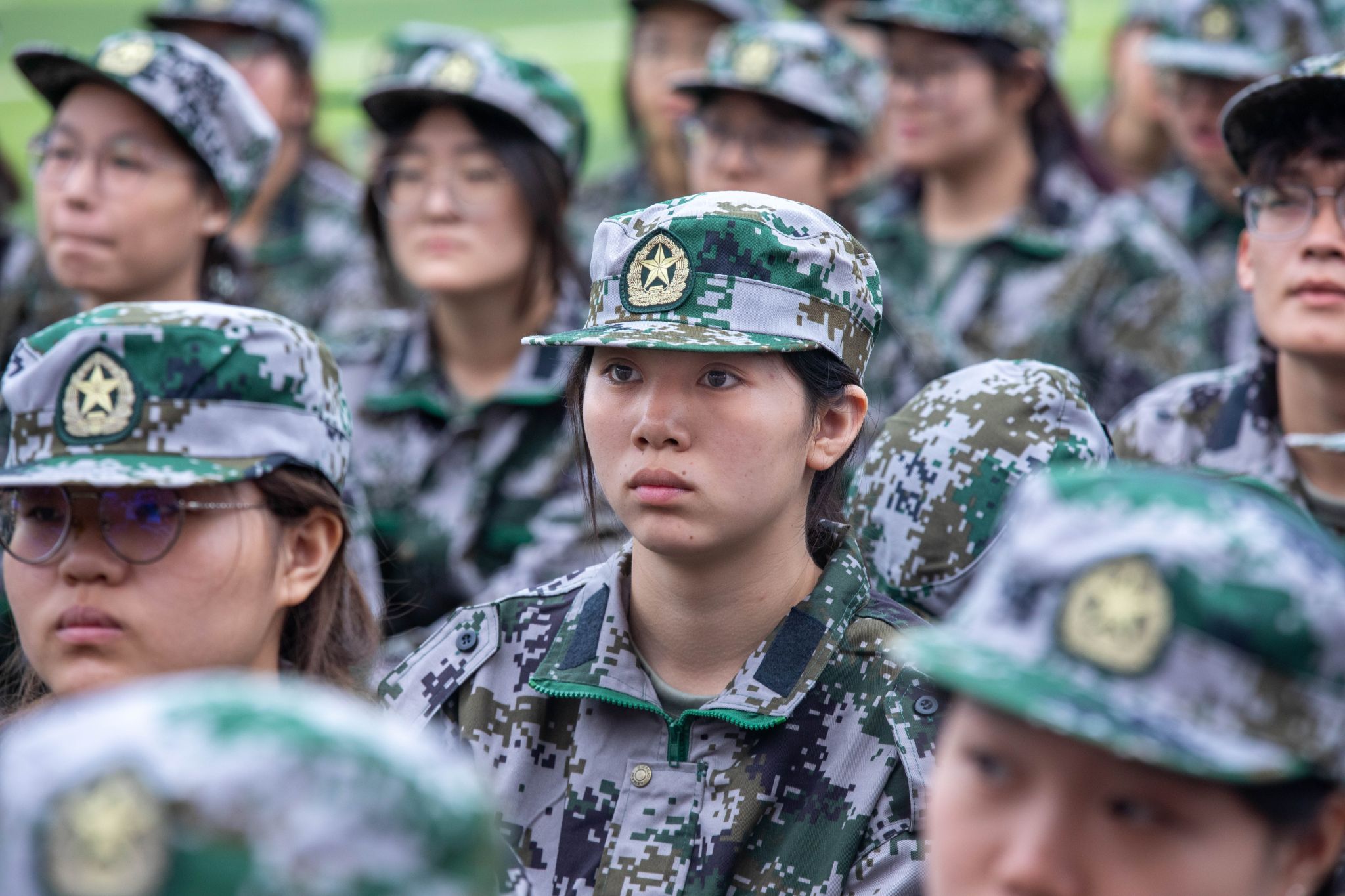 新生代表王心悦带领全体新生宣誓,服从命令、刻苦训练,用行动践行青春担当。