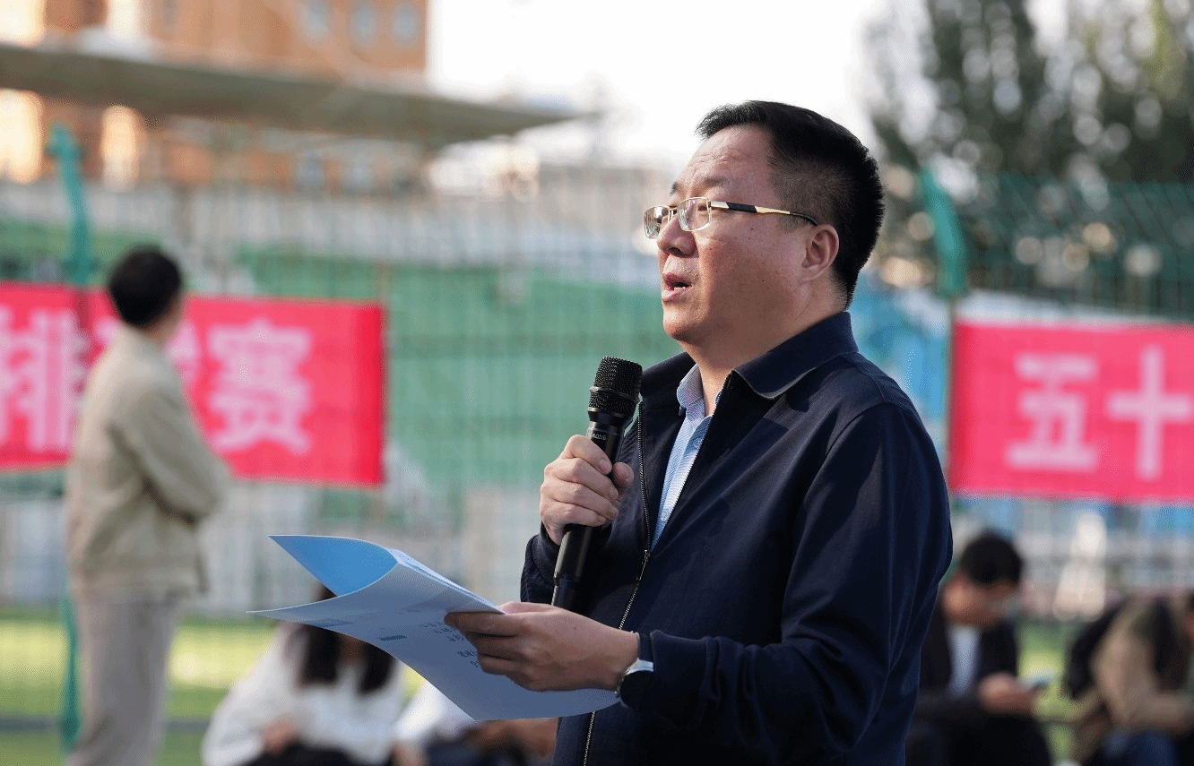 张越在致辞中指出,本次排球赛是学校庆祝建校50周年系列活动的组成部分,意义非凡。五十年风雨兼程,五十年春华秋实,一代代教职工扎根讲台,默默耕耘,用智慧和汗水书写了学校发展的辉煌篇章。今天,大家脱下工装,换上运动服,在排球赛场上挥洒激情,这不仅是对健康生活方式的倡导,更是对“艰苦奋斗、自强不息”精神的生动诠释。希望教职工在比赛中增进友谊,享受过程,用团结协作和顽强拼搏,为50周年校庆注入澎湃的体育活力。