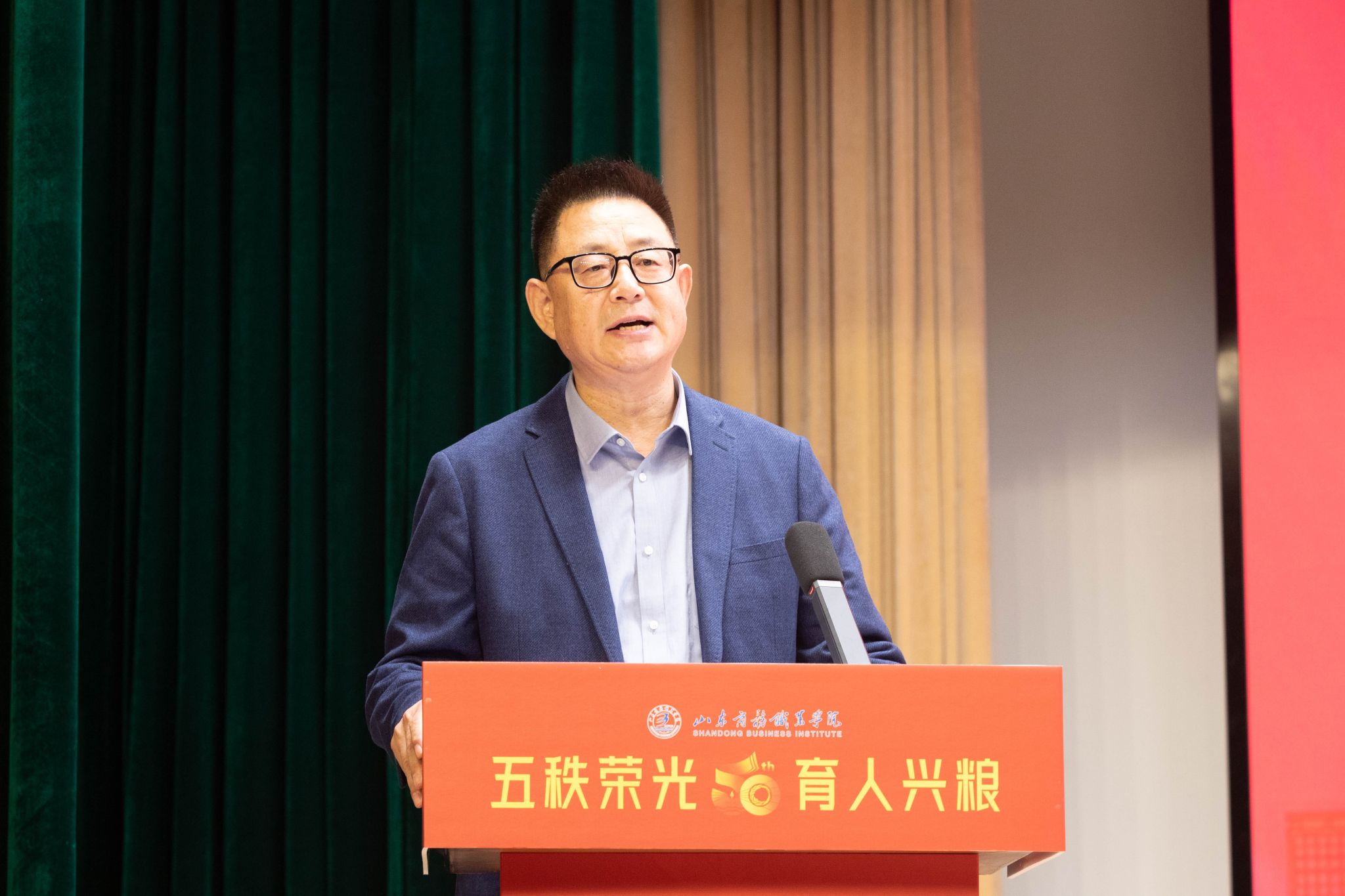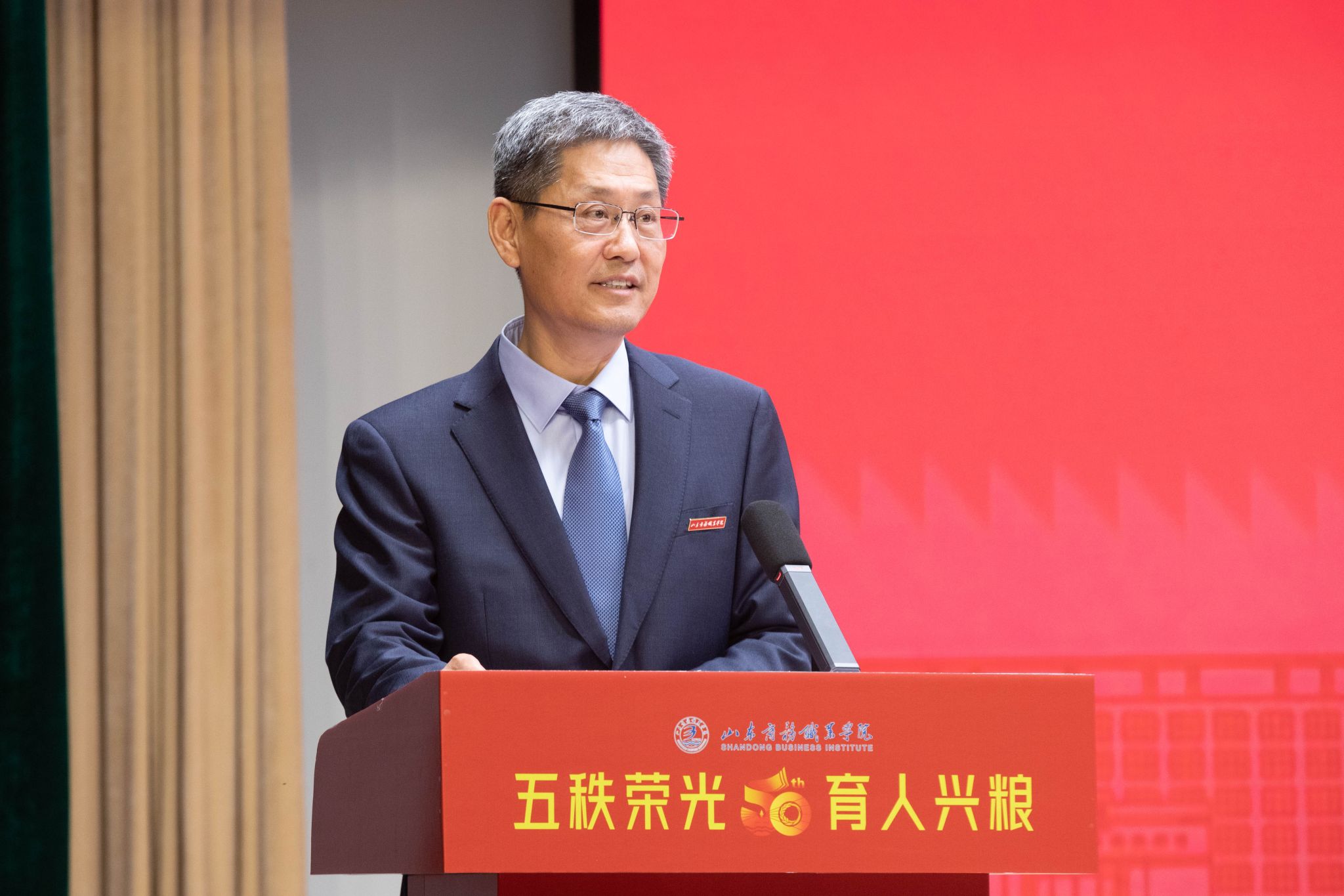 本站讯 10月17日下午,我校庆祝建校50周年捐赠仪式在音乐厅隆重举行。山东省粮食和物资储备局党组成员、副局长吕明出席捐赠仪式。学校党委书记孙云茂,党委副书记、校长王发明等领导班子成员参加仪式。