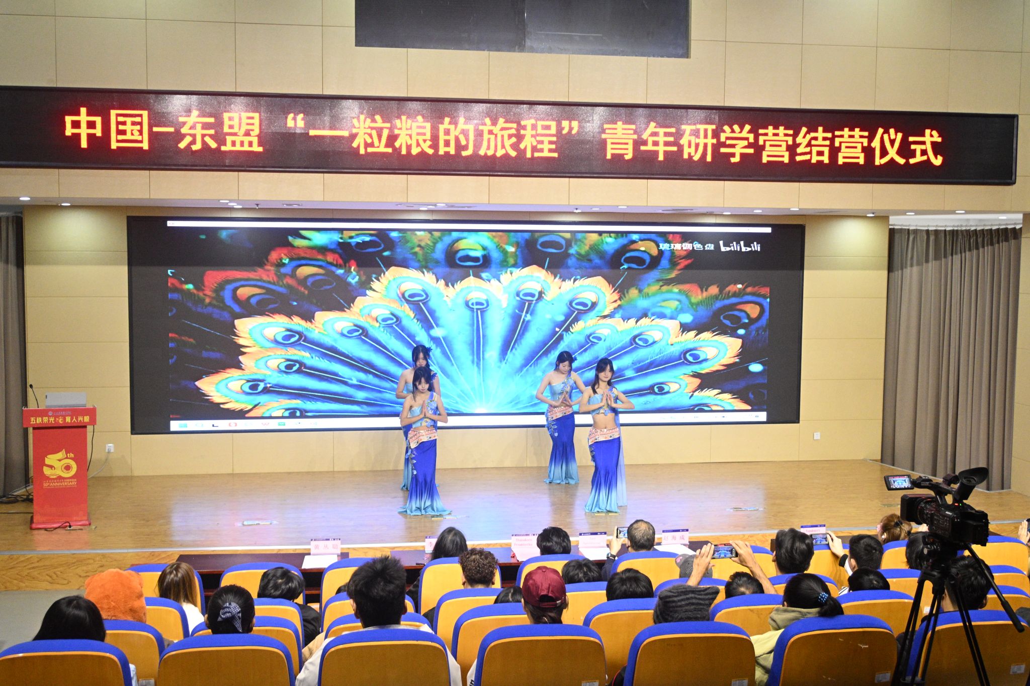 现场,极具中国文化特色的傣族舞表演赢得阵阵掌声,灵动舞姿与悠扬旋律展现民族魅力,为跨文化交流增添浓厚氛围。随后,泰国兰实大学Thanakorn Promkhotka教师致谢,高度认可研学课程的专业性与实践性,表示泰方师生既学到了中国粮食产业先进技术,也感受到了中国文化底蕴,期待两校在联合科研、人才培养上进一步携手。泰方学生代表分享了从陌生到熟练操作谷物加工、蛋糕制作的成长,表达了将所学转化为中泰合作力量的决心。