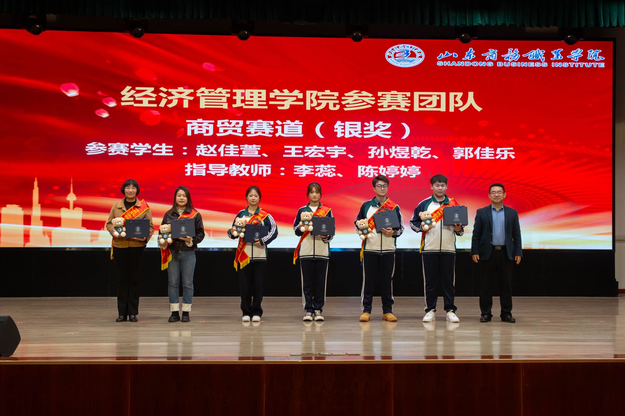 世校赛斩获3金4银,彰显商务实力,党委委员、纪委书记魏才奎宣读2025年世校赛争夺赛获奖名单。校领导分别为7支获奖团队颁发纪念品,这份荣誉不仅见证了师生的拼搏付出,更承载着学校的肯定与期许。
