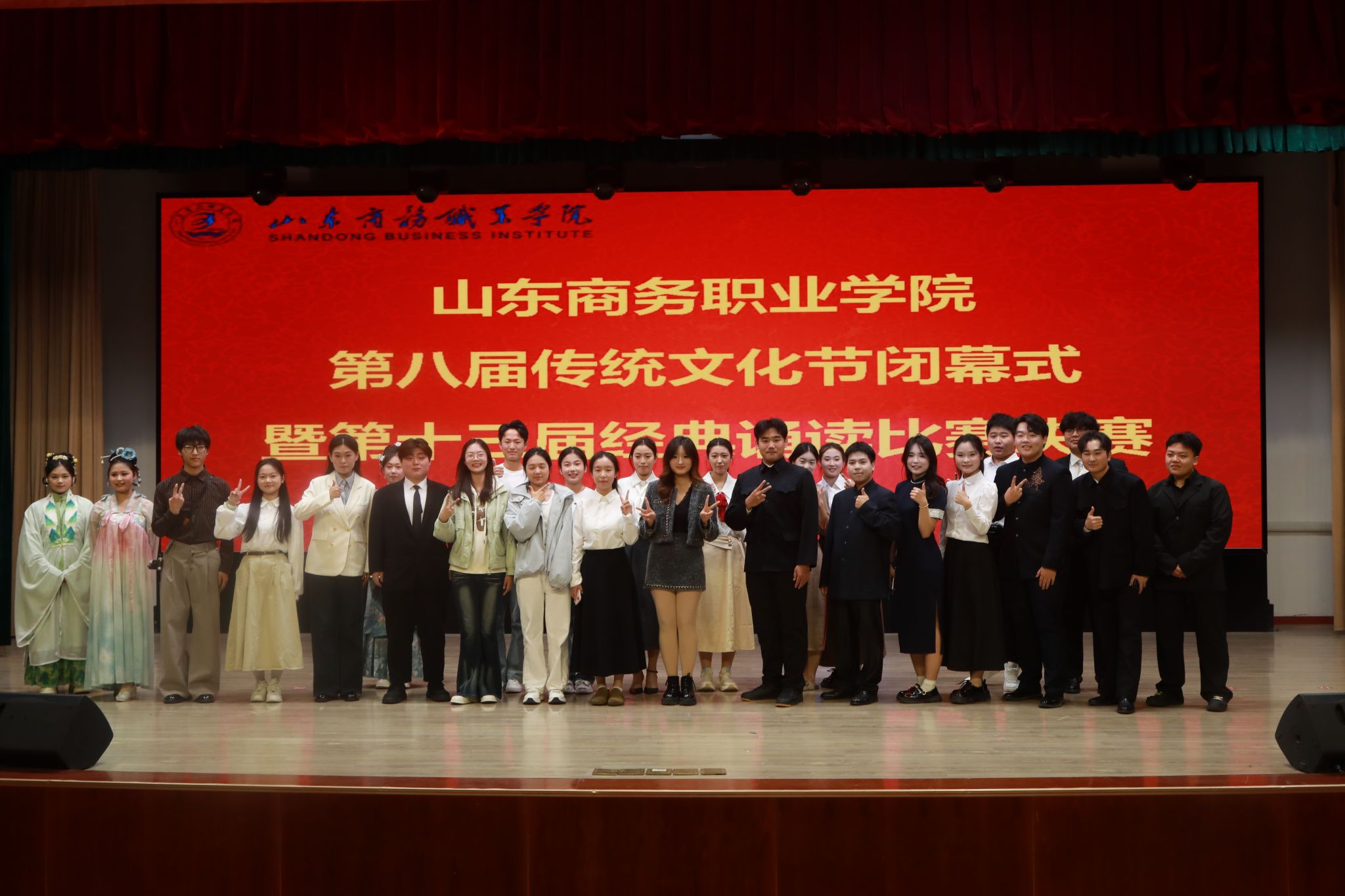 本站讯 11月14日下午,我校第八届传统文化节闭幕式暨第十三届经典诵读比赛决赛在音乐厅举行。学校党委委员、宣传统战部部长孙芹宝、基础教学部主任李刚、学生工作处(团委)副处长杨建辉、图书馆副馆长王林以及来自各二级学院的相关负责人、师生代表齐聚现场,共同见证这场传统文化与青春活力交织的舞台展演。