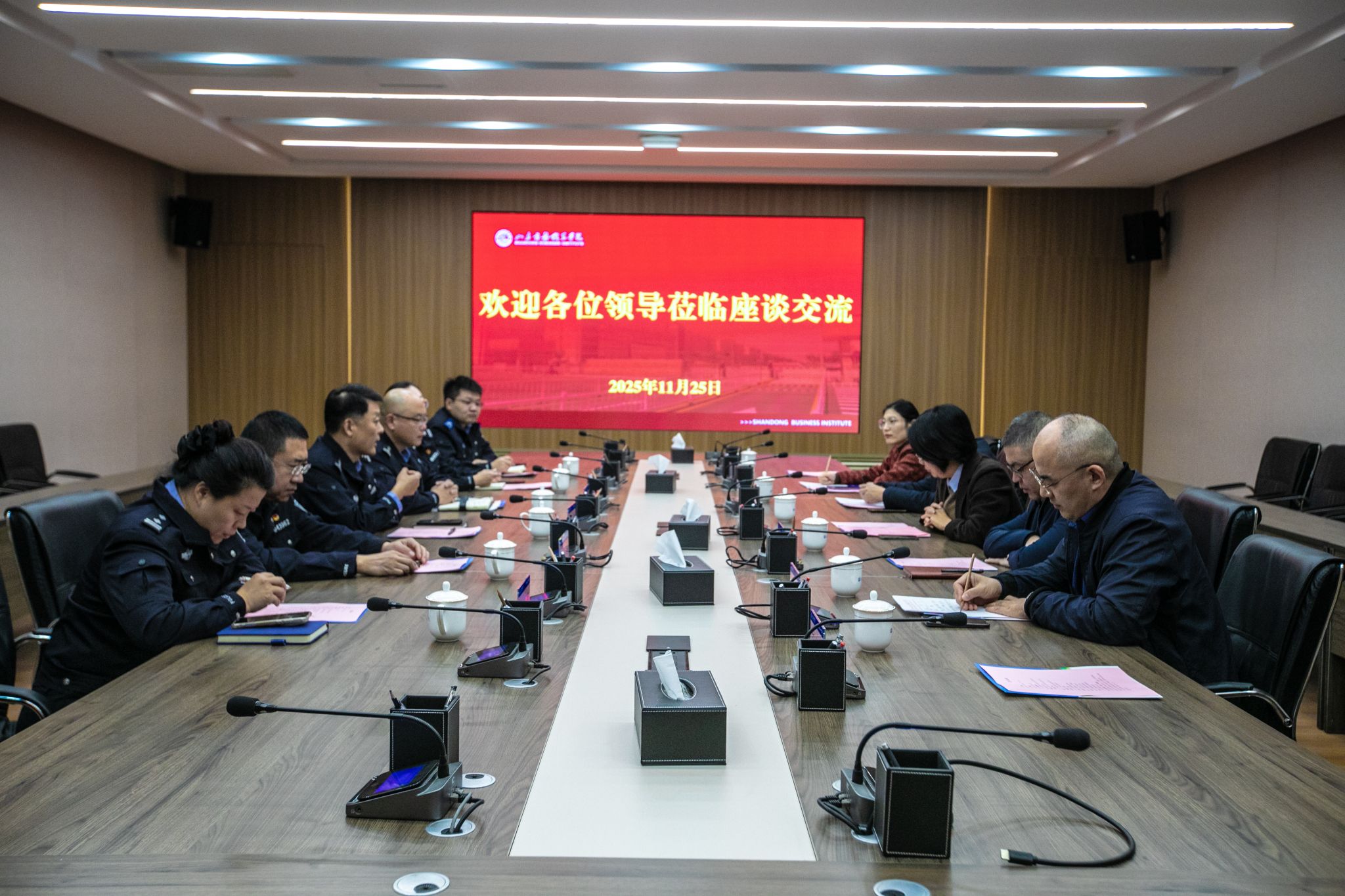 座谈中,国际教育学院院长刘景光详细介绍了学校留学生教育的整体情况。烟台市公安局出入境管理局境外人员管理大队副大队长满曙光针对留学生管理工作提出四点注意事项,为学校优化留学生管理体系提供了专业指导。双方还就留学生招生、日常管理等实际问题展开深入探讨,出入境管理部门相关人员结合不同国别学生的特点,给出了具有针对性的管理建议。