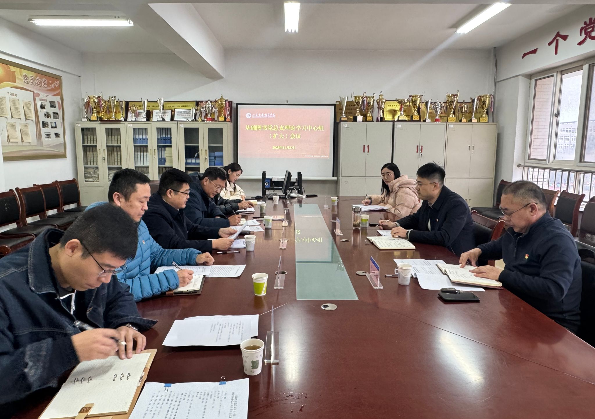 本站讯 11月27日上午,基础图书党总支在办公楼418室召开理论学习中心组(扩大)会议。学校党委委员、副校长孙玉林出席会议并作点评指导,学校旁听工作组成员赵海成、衣英霄列席会议。会议由党总支书记李刚主持,党总支班子成员及副科级以上干部参加会议。