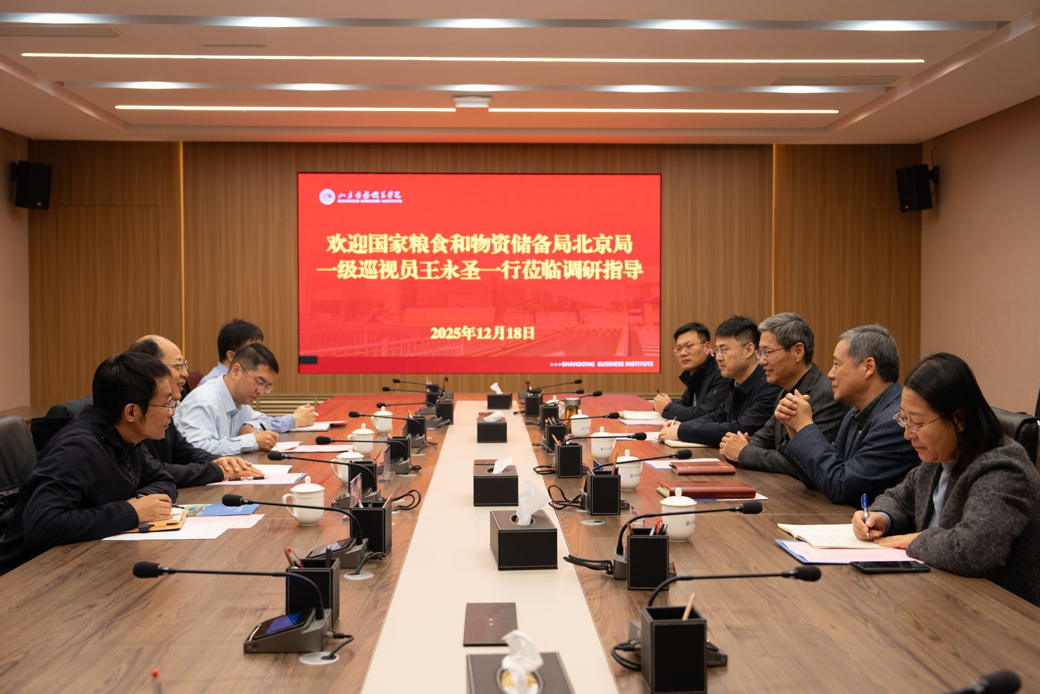本站讯 12月18日,国家粮食和物资储备局北京局一级巡视员王永圣一行到学校调研交流。学校党委书记孙云茂,党委副书记、校长王发明出席座谈。