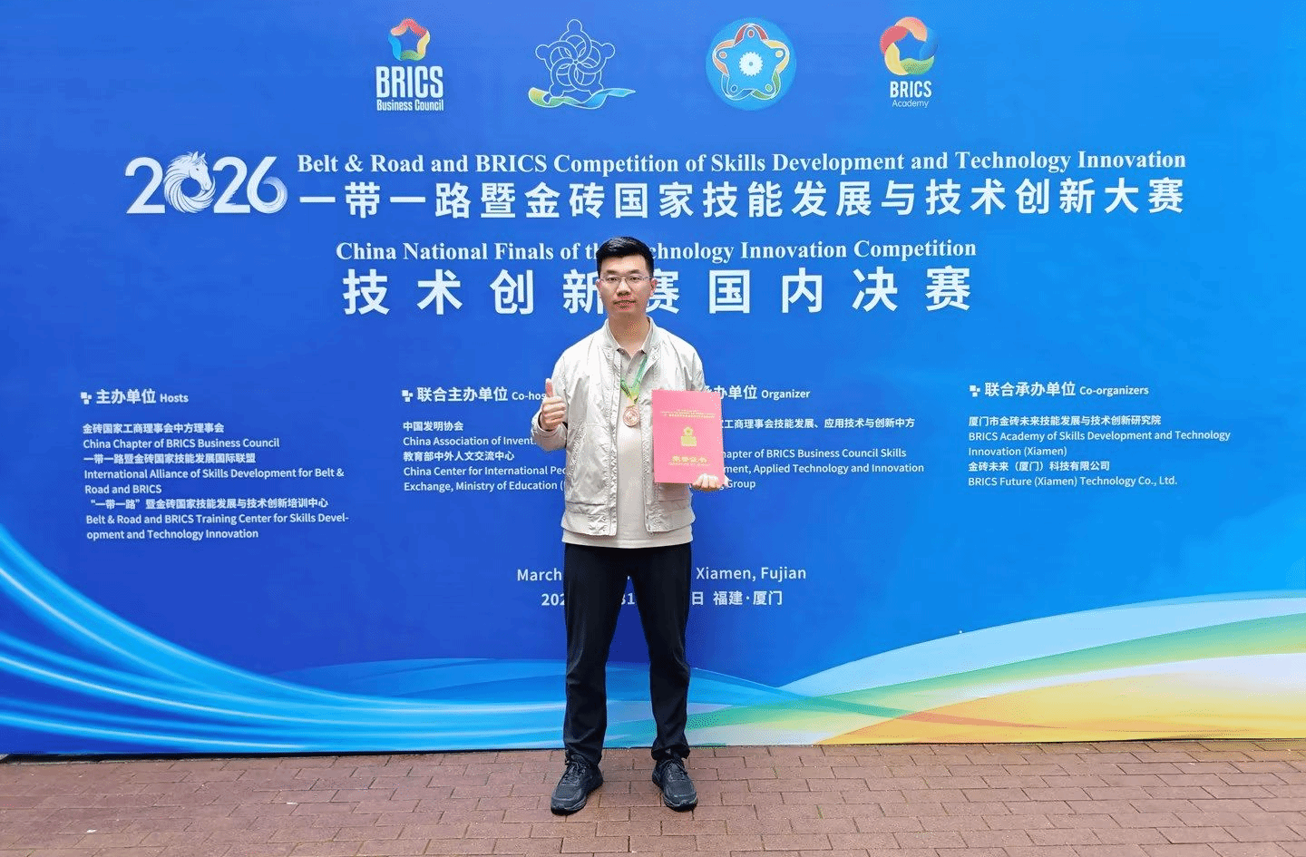 本站讯 4月1日至3日,2026一带一路暨金砖国家技能发展与技术创新大赛之技术创新赛国内决赛在厦门举办。我校联合爱应用大数据科技(烟台)有限公司,凭借“数智粮仓:粮食安全生产智慧管理平台”项目,在数字农业与粮食安全赛道中荣获铜奖。本次大赛为本、专科院校同场竞技,彰显了学校在粮食安全数字化领域的技术实力与产教融合成果。
