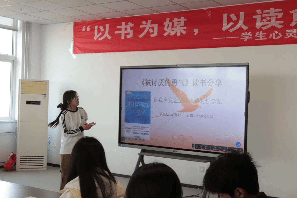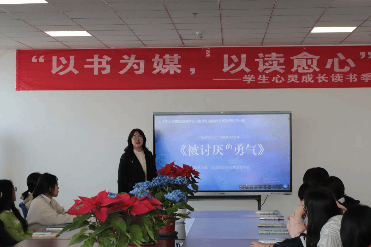 本次活动特邀大学生心理健康教育中心张露老师作专题导读。她以阿德勒心理学为理论基础,围绕 “目的论”“课题分离”“共同体感觉” 等核心概念,结合大学生在学习压力、宿舍关系、人际沟通、自我认同等方面的常见困扰,系统解读《被讨厌的勇气》一书主旨内涵,引导同学们学会挣脱他人评价的束缚、接纳不完美的自己、拥有被讨厌的勇气,以更自信、更从容的心态面对生活与成长。