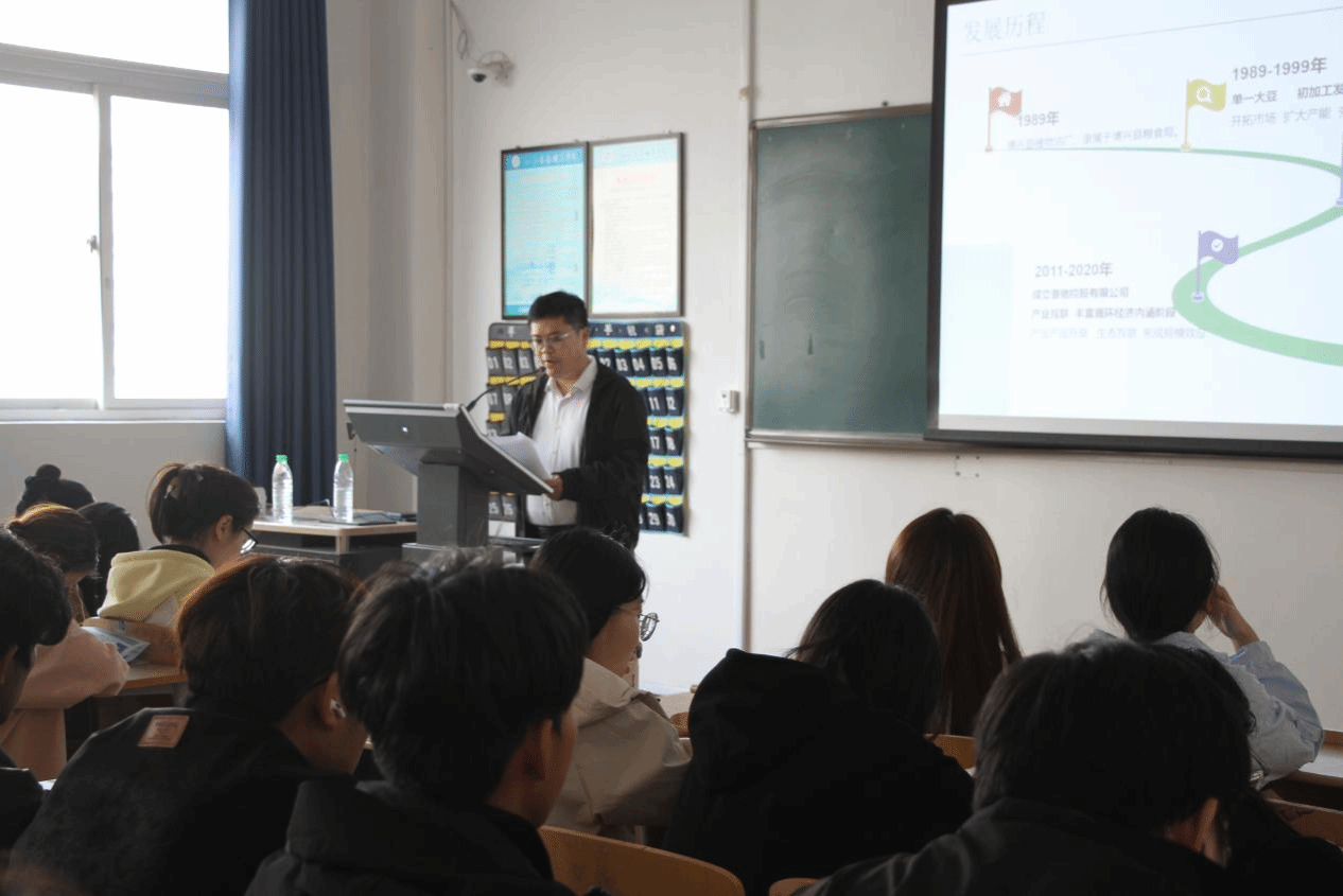宣讲现场氛围热烈,秩序井然。各企业负责人围绕企业发展布局、人才培养体系、岗位需求与职业晋升路径等内容展开详细讲解,针对学生关心的薪资福利、实习实训安排等问题逐一答疑解惑。参会企业纷纷对活动成效与学子风貌给予高度评价。学校订单班合作企业青岛丹香人事经理杨逢春表示:“本次依托齐鲁粮油产教联合体搭建的对接平台精准度极高,学生参与热情高涨,主动沟通岗位细节,求职目标明确、准备充分。”龙口香驰人事经理马紫恒表示:“学校将就业育人贯穿人才培养全链条,培养的学生专业功底扎实、职业素养过硬,对行业认知清晰,本次活动为我们精准输送了高适配的后备人才,也为校企深化合作筑牢了根基。”