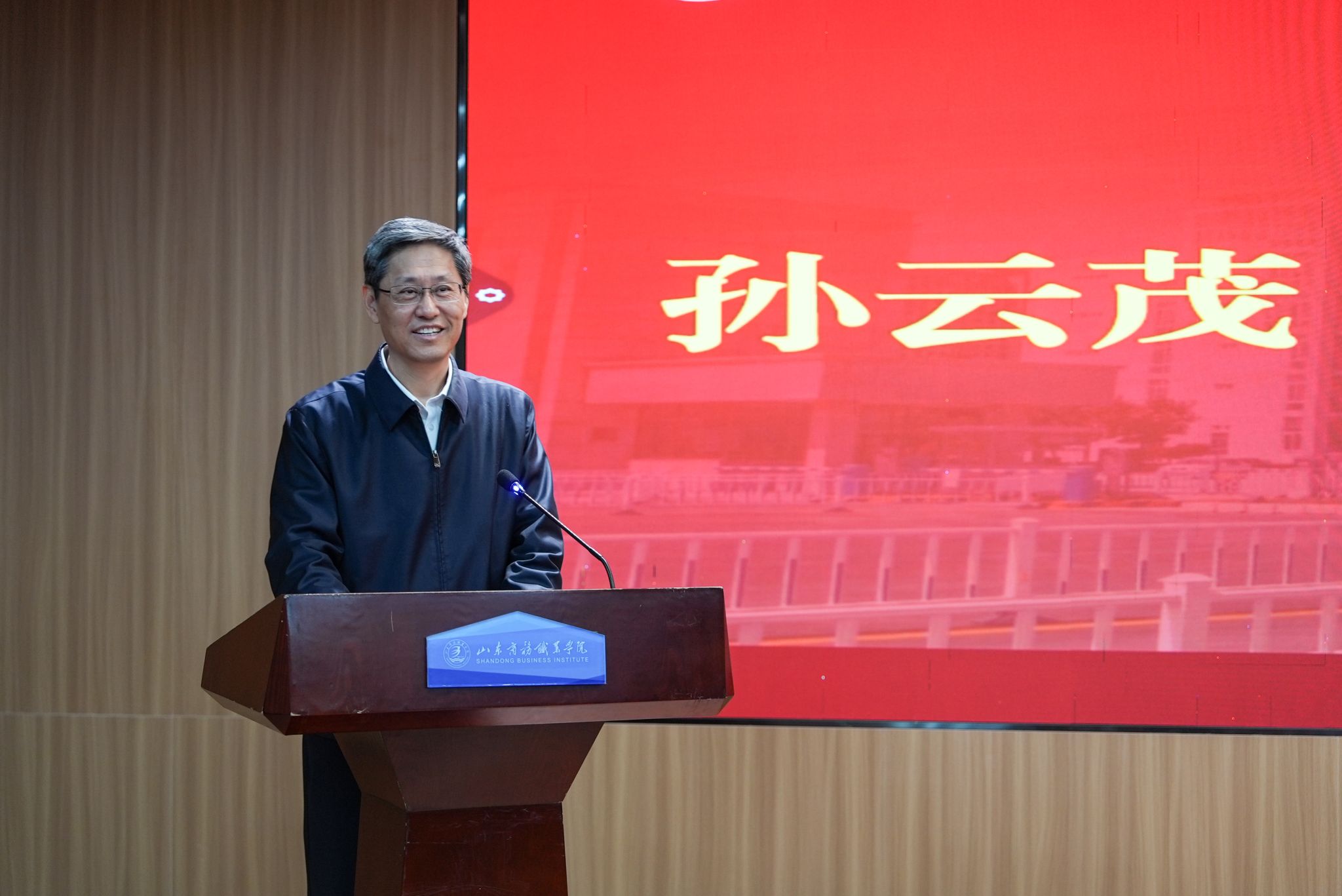 本站讯 4月24日,山东商务职业学院欧美同学会(山东商务职业学院留学人员联谊会)成立大会在学校办公楼学习中心举行。烟台市欧美同学会会长、市政协副主席、中国科学院烟台海岸带研究所所长秦松出席并致辞,学校党委书记孙云茂出席并讲话,市欧美同学会秘书处相关负责同志,二级院部党总支书记及学校欧美同学会首批会员共40余人参加会议。