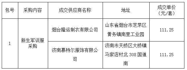 一、项目名称:新生军训服采购