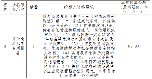 二、采购项目名称:粮食产后服务/粮食工程技术与管理高水平专业群和面机及烘焙等设备采购