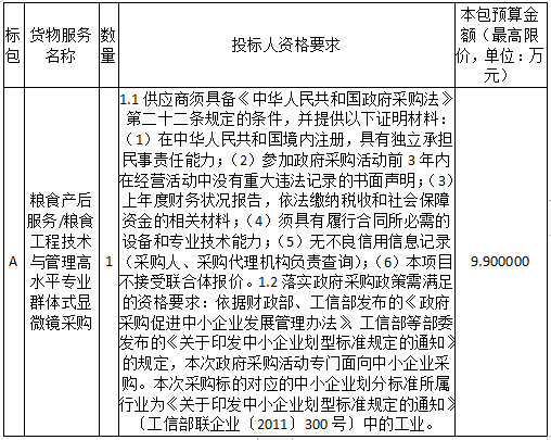 二、采购项目名称:粮食产后服务/粮食工程技术与管理高水平专业群体式显微镜采购