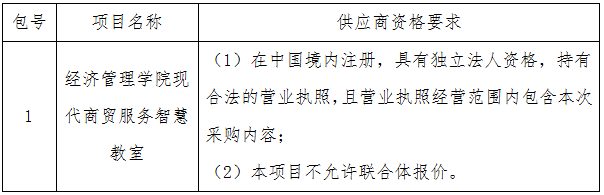一、采购项目名称:山东商务职业学院经济管理学院现代商贸服务智慧教室