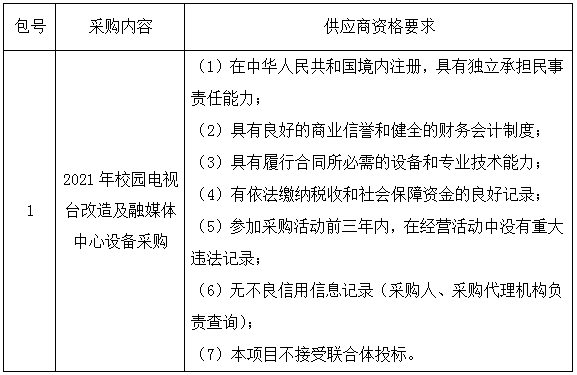 一、采购项目名称:2021年校园电视台改造及融媒体中心设备采购
