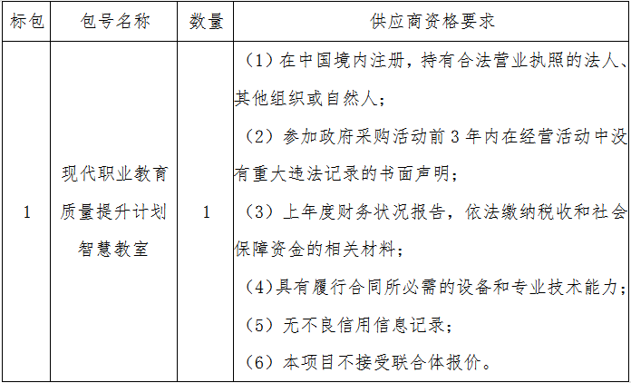 二、采购项目名称:现代职业教育质量提升计划智慧教室