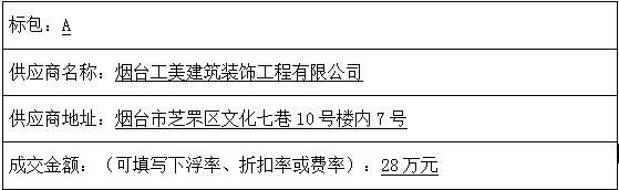标包A:烟台工美建筑装饰工程有限公司(81.0、84.0、93.0)、山东合力博创光电科技有限公司(73.88、79.88、84.88)、烟台奥星电器设备有限公司(77.36、80.36、91.36)