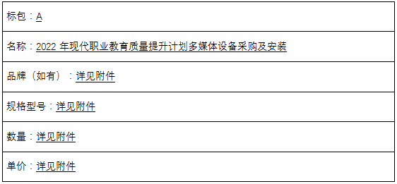 二、项目名称:2022年现代职业教育质量提升计划多媒体设备采购及安装