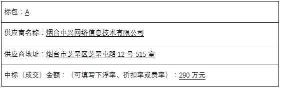 标包A:烟台中兴网络信息技术有限公司(103.24、103.74、104.24、106.24、106.24)、山东东华信息技术有限公司(81.73、82.73、86.73、86.73、91.23)、山东诚海电子科技有限公司(95.54、96.04、96.54、98.04、100.04)、烟台大有数据系统有限公司(69.32、70.32、72.82、73.82、74.32)、烟台万通电脑有限公司(97.16、102.26、102.96、103.46、104.96)、山东悦朗信息科技有限公司(66.5467.14、68.64、70.64、71.14)、山东优谱信息科技有限公司(62.05、63.85、65.85、67.85、68.35)