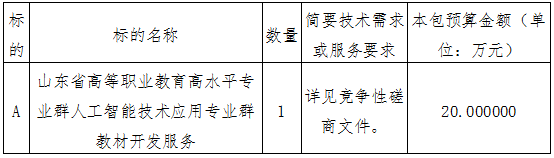 项目名称:山东省高等职业教育高水平专业群人工智能技术应用专业群教材开发服务