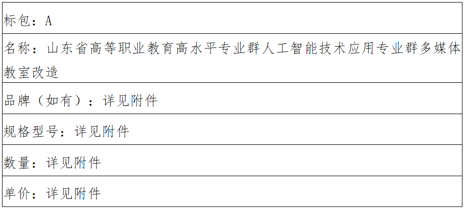 二、项目名称:山东省高等职业教育高水平专业群人工智能技术应用专业群多媒体教室改造