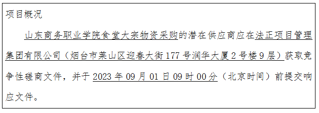采购需求:本项目为山东商务职业学院食堂大宗物资采购,共分9个包。