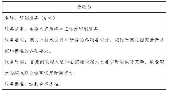 二、项目名称:印刷服务(A包)