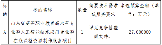 项目名称:山东省高等职业教育高水平专业群人工智能技术应用专业群在线课程资源制作服务项目