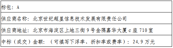 标包A:北京世纪超星信息技术发展有限责任公司(99.0、100.0、100.0)、山东蓝畅教育图书有限公司(88.27、91.27、91.27)、山东翼动智能科技有限公司(92.65、98.65、98.65)、山东智道网络科技有限公司(61.22、73.22、73.22)、山东泽育信息技术有限公司(46.61、46.61、49.61)、华发(山东)文化产业有限公司(56.26、64.26、64.26)、山东楠华文化科技有限公司(47.65、53.65、53.65)