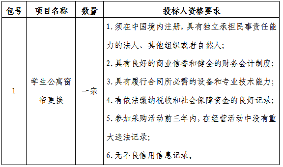 采购内容:学生公寓窗帘更换;本项目划分一个包;