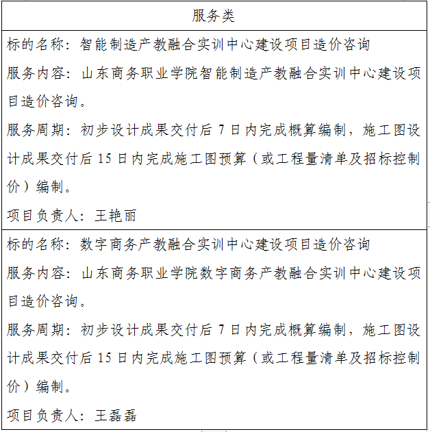 二、项目名称:山东商务职业学院智能制造产教融合实训中心、数字商务产教融合实训中心建设项目造价咨询
