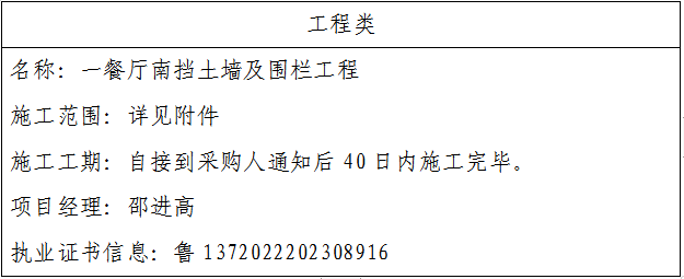 二、项目名称:一餐厅南挡土墙及围栏工程