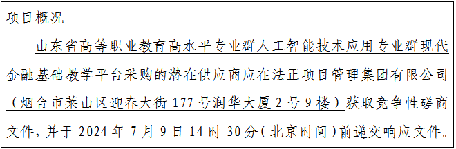 2.项目名称:山东省高等职业教育高水平专业群人工智能技术应用专业群现代金融基础教学平台采购