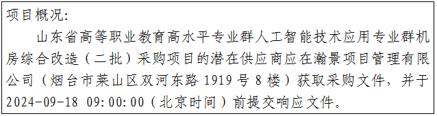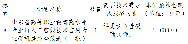 项目名称:山东省高等职业教育高水平专业群人工智能技术应用专业群机房综合改造(二批)